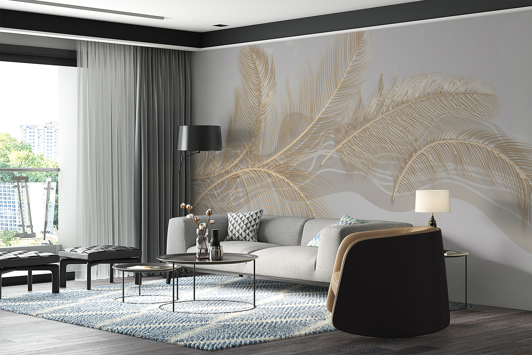 Stel je voor dat je je kamer binnenloopt en begroet wordt door zachte, elegante verenkunst in rustgevende beige tinten… klinkt dat niet dromerig? Bij deze muurschildering gaat het niet alleen om het opvullen van een muur, maar ook om het transformeren van een ruimte in een rustgevend toevluchtsoord. Het delicate verenontwerp geeft een gevoel van lichtheid en gratie, bijna als een zacht gefluister van de natuur in je huis. Het is perfect voor het creëren van een serene leeshoek of een rustige slaapkamer.