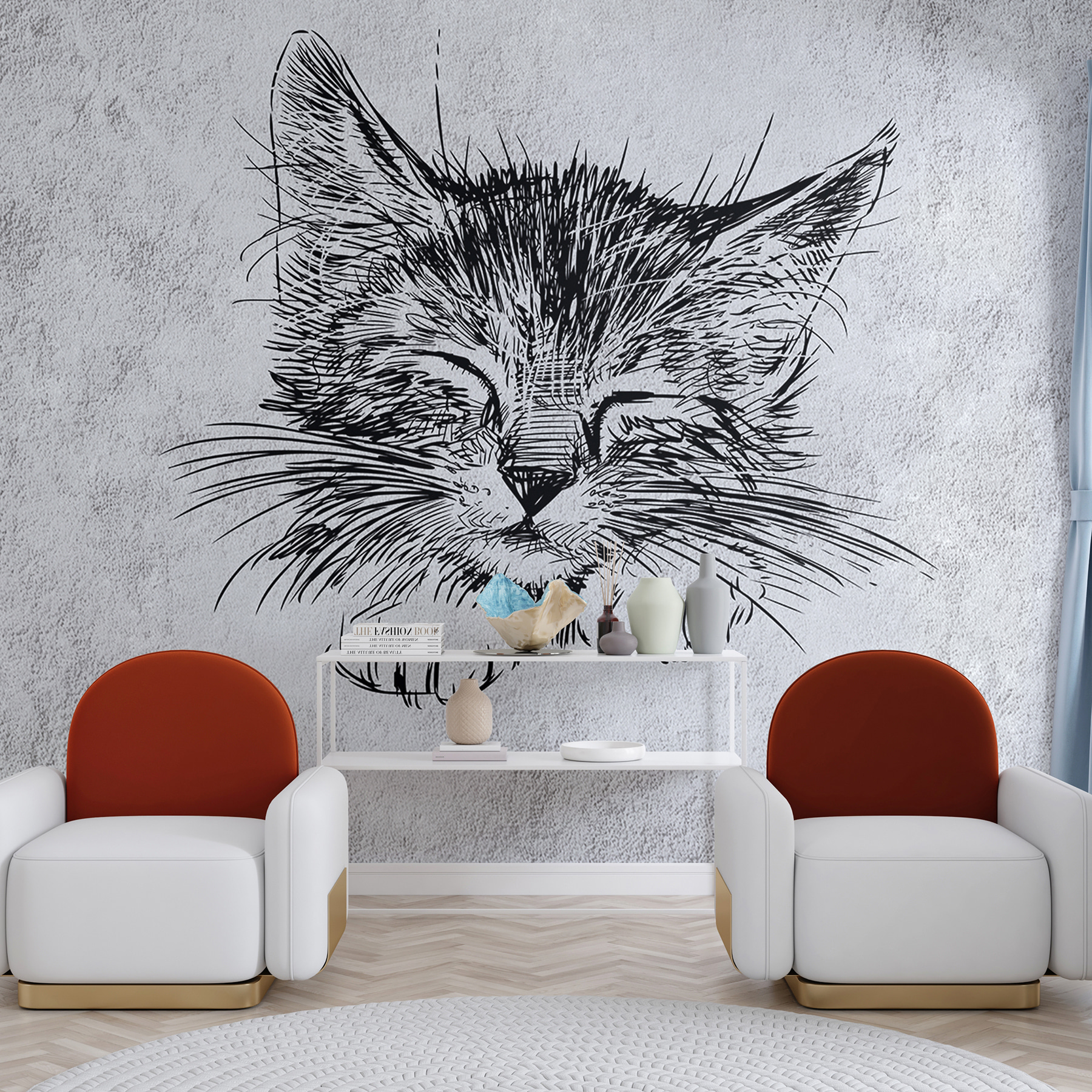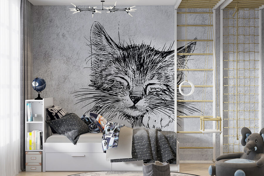 Transformeer je ruimte met deze schattige muurschildering met een slaperig katje. Stel je voor dat je na een lange dag thuiskomt en begroet wordt door deze kleine haarbal die lekker op zijn papier ligt. Het is alsof je een gezellig kunstwerk hebt dat elke keer dat je het ziet een glimlach op je gezicht tovert. De fijne lijnen geven de vredige charme van het katje weer, waardoor elke kamer meteen een meer uitnodigend gevoel krijgt. Of het nu in een slaapkamer is of in een speelse hoek, deze muurschildering fluistert kalmte en warmte. Perfect voor kattenliefhebbers of iedereen die van een grillige inrichting houdt – wie wil er nu niet omringd worden door zulke schattigheid? Laat dit slapende poesje het charmante middelpunt zijn dat vreugde en speelse gesprekken opwekt.