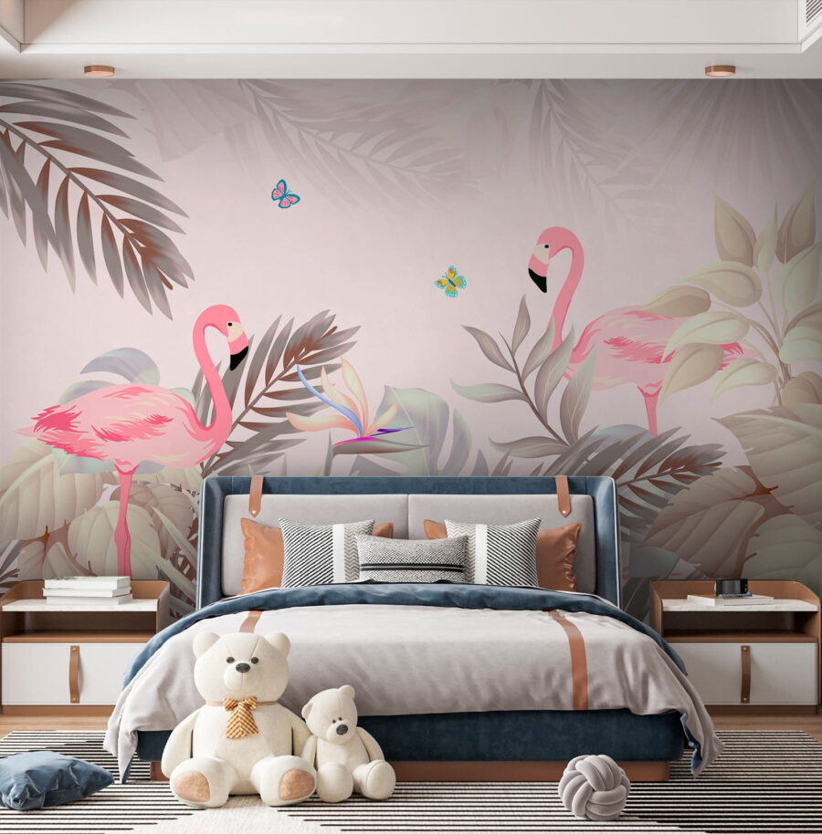 Stel je voor dat je een kamer binnenloopt die aanvoelt als een tropisch paradijs – de zachte kleuren en prachtige details van deze muurschildering “Blue and Pink Butterfly” brengen zoveel leven in elke ruimte! Met mooie flamingo’s en levendige vlinders is het net een mini-vakantie aan de muur. Deze muurschildering uit de categorieën “Muurschilderingen met dieren” en “Muurschilderingen met natuur” is perfect voor iedereen die van een unieke inrichting houdt en maakt van elke kamer een dromerige, ontspannende ontsnapping.