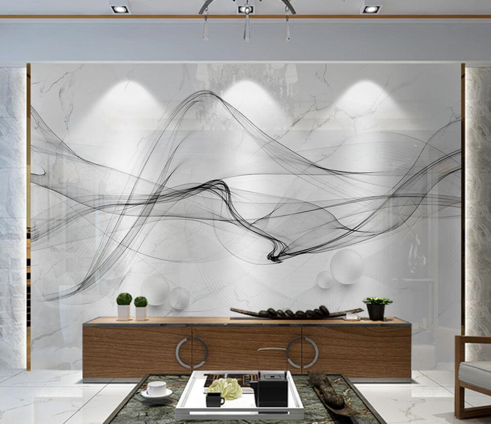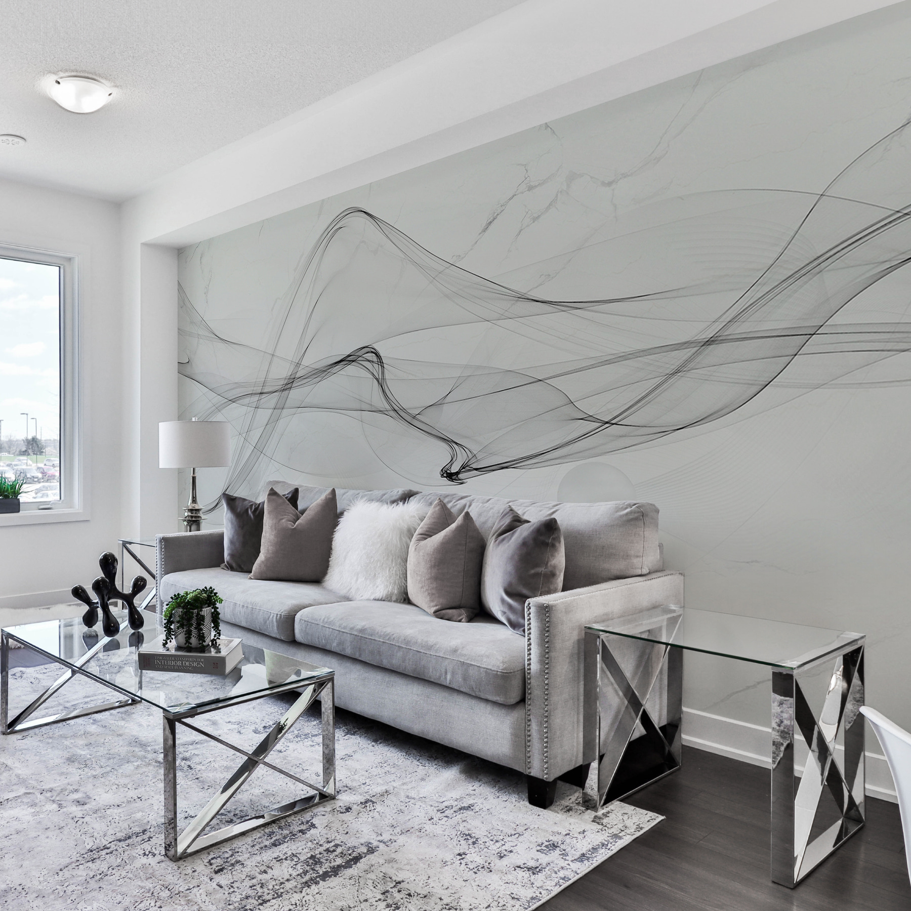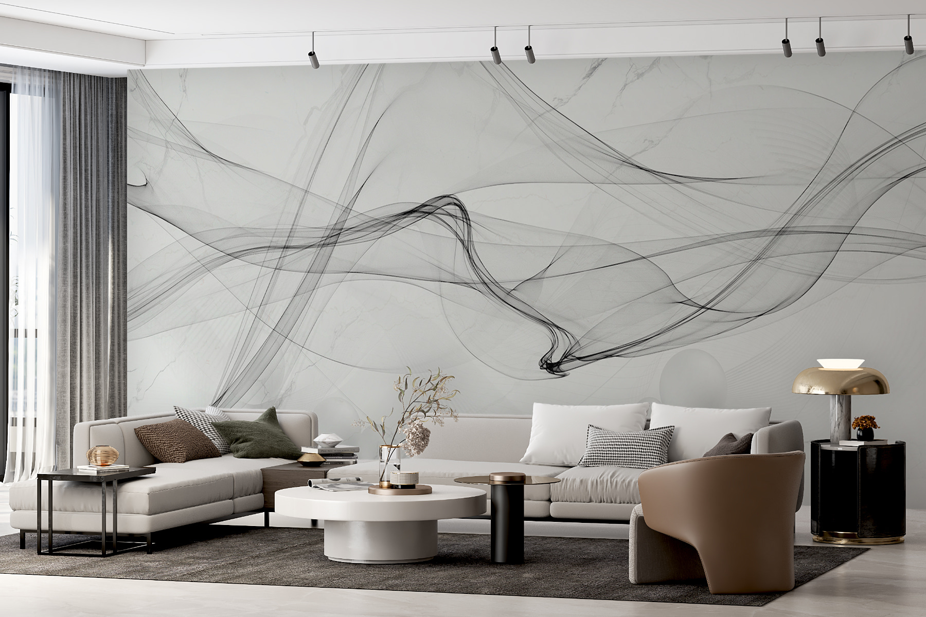 Stel je dit eens voor in je woonkamer: de muurschildering “Abstracte golven op marmer”. Zachte, vloeiende lijnen die er bijna uitzien als delicate zwarte rook die danst op een strakke, gemarmerde achtergrond. Het is een van die stukken die een ruimte kunnen transformeren, waardoor het zowel elegant als moeiteloos cool aanvoelt. Stel je voor dat je lekker wegkruipt met een boek terwijl de wervelende patronen af en toe zachtjes je aandacht stelen… het is alsof je een stuk moderne kunst in huis hebt. Dit is een gespreksonderwerp, geloof me. Perfect voor wie houdt van een mix van minimalisme en een vleugje eigenzinnigheid.
