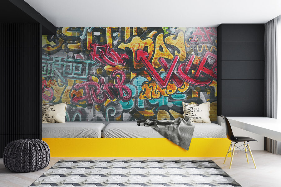 Wil je je ruimte opfleuren met een vleugje urban cool? Kijk dan eens naar de “Fotobehang Yellow and Black Graffiti”. Het is alsof je een explosie van straatkunst in je woonkamer hebt – helder geel, diep zwart en een kleurenpracht die bijna van de muur springt. Stel je voor dat je elke ochtend je bed uitrolt voor deze uitspatting van creativiteit. Het heeft die rauwe, edgy vibe waardoor je ruimte aanvoelt als een kunstgalerie in het hart van de stad. Het ene moment ben je koffie aan het zetten en het volgende moment ben je geïnspireerd om zelf ook aan de slag te gaan met graffitikunst (maar hou het misschien bij de muurschildering!). Het is perfect voor iedereen die van een gedurfde inrichting houdt en niet bang is om een statement te maken. Geloof me, je zult je niet vervelen als je hiernaar kijkt!