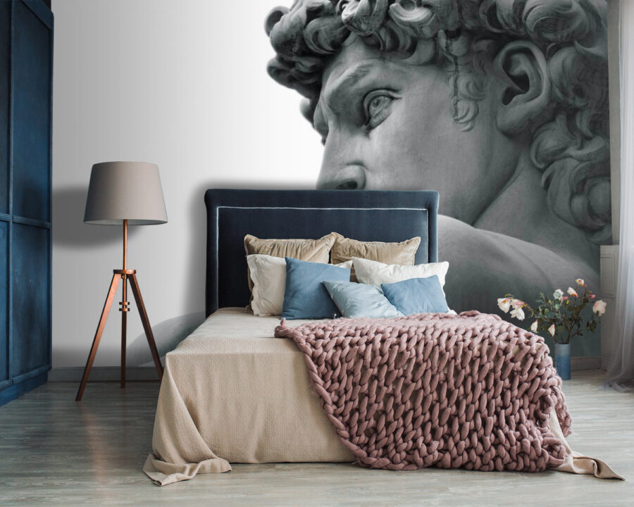 Deze muurschildering van een standbeeld van een man is alsof je een stukje van een groot museum in je eigen ruimte brengt. Stel je voor dat dit opvallende, tijdloze gezicht over je woonkamer waakt – een instant gespreksstarter, toch? Het is perfect voor wie hunkert naar een beetje klassieke elegantie, maar dan in een frisse, moderne omgeving. De details zijn zo levendig dat je de koele gladheid van het marmer bijna kunt voelen. Het kan een gewone muur omtoveren tot een prachtig middelpunt. Iedere keer dat je er een glimp van opvangt, voel je je een beetje meer beschaafd en verfijnd!