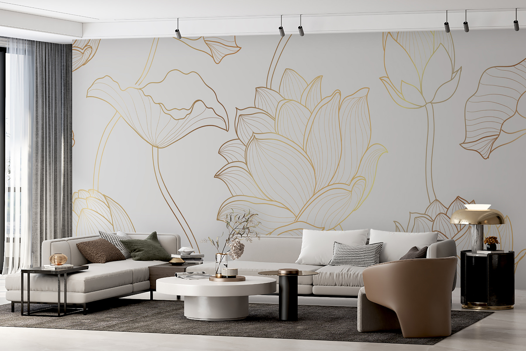 Bekijk deze prachtige muurschildering met de naam “Elegante lotusbloemen op een zachte achtergrond”. Het is perfect om een serene, verfijnde sfeer toe te voegen aan je interieur. Stel je voor dat je wakker wordt met een elegant getekende tuin aan je muur. De zachte tinten en fijne lijnen geven je het gevoel alsof de bloemen je zoete woordjes toefluisteren.