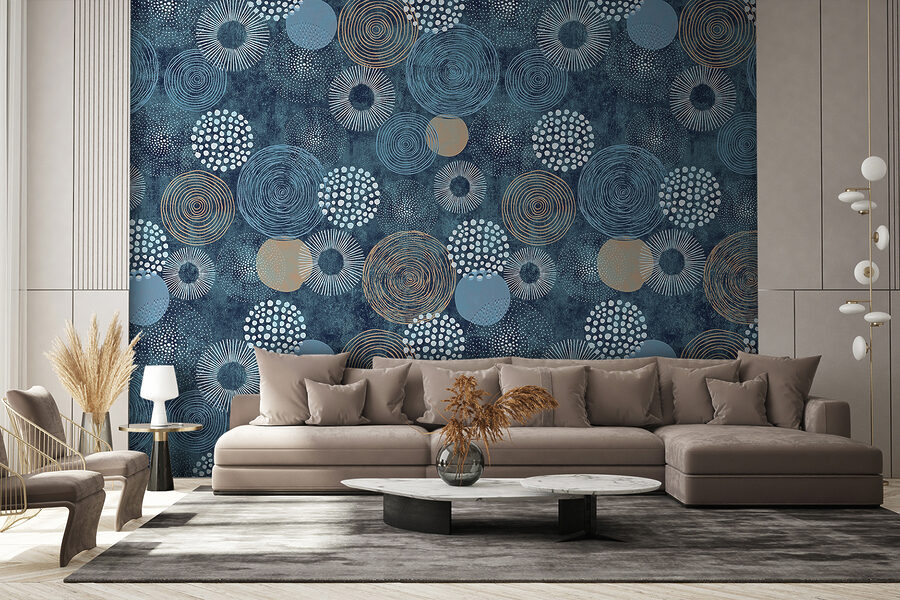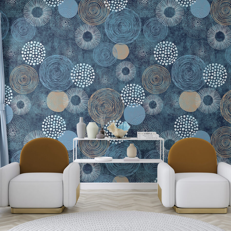 1 beoordeling voor Fotobehang Blauw en wit cirkelontwerp
