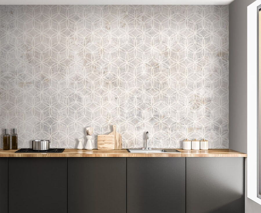 Het is sereen en geraffineerd, een beetje alsof je een moderne tuin aan je muur hebt hangen – of in ieder geval een vleugje ervan. Stel je voor dat je tot rust komt in een kamer omarmd door dit rustgevende patroon. Een kopje thee, een favoriet boek in de hand – opeens is het je nieuwe favoriete hoekje. Voeg wat comfortabele plaids toe of een klassieke lijst aan de muur aan de overkant en je hebt een ruimte die zowel fris als vertrouwd aanvoelt.
