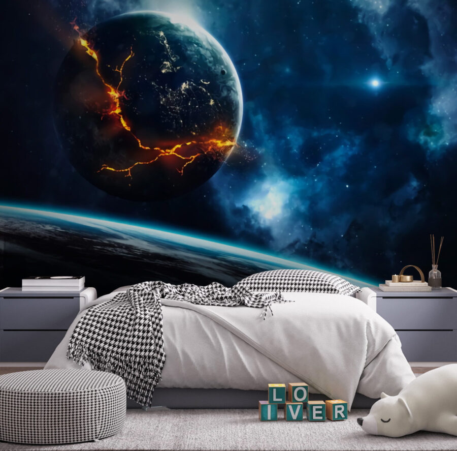 Stel je voor dat je elke dag wakker wordt met dit prachtige kosmische tafereel – hoe cool is dat? Onze muurschildering “Planeet met vuur op de achtergrond” brengt de dramatische schoonheid van een sterrenstelsel naar je woonkamer (of je kantoor, of waar je ook maar zin hebt om een vleugje hemelse flair toe te voegen). Deze muurschildering is niet alleen oogverblindend levendig, maar voelt bijna levend aan met die vurige planeet die knettert tegen het diepe, mysterieuze blauw van het sterrenstelsel. Het is alsof je een venster hebt op een ander universum, dat je verwondert, nieuwsgierig maakt en misschien een beetje laat wegdromen over verre avonturen. Of je nu van astronomie houdt of gewoon van een gedurfd, uniek decor, dit stuk zal zeker een gesprek op gang brengen. Je gasten zullen zich misschien zelfs wat meer verbonden voelen met de kosmos. En laten we eerlijk zijn, wie kan er niet wat meer van die magie in zijn leven gebruiken? Perfect voor wie houdt van de ontzagwekkende uitgestrektheid van de ruimte met een vleugje vuur!