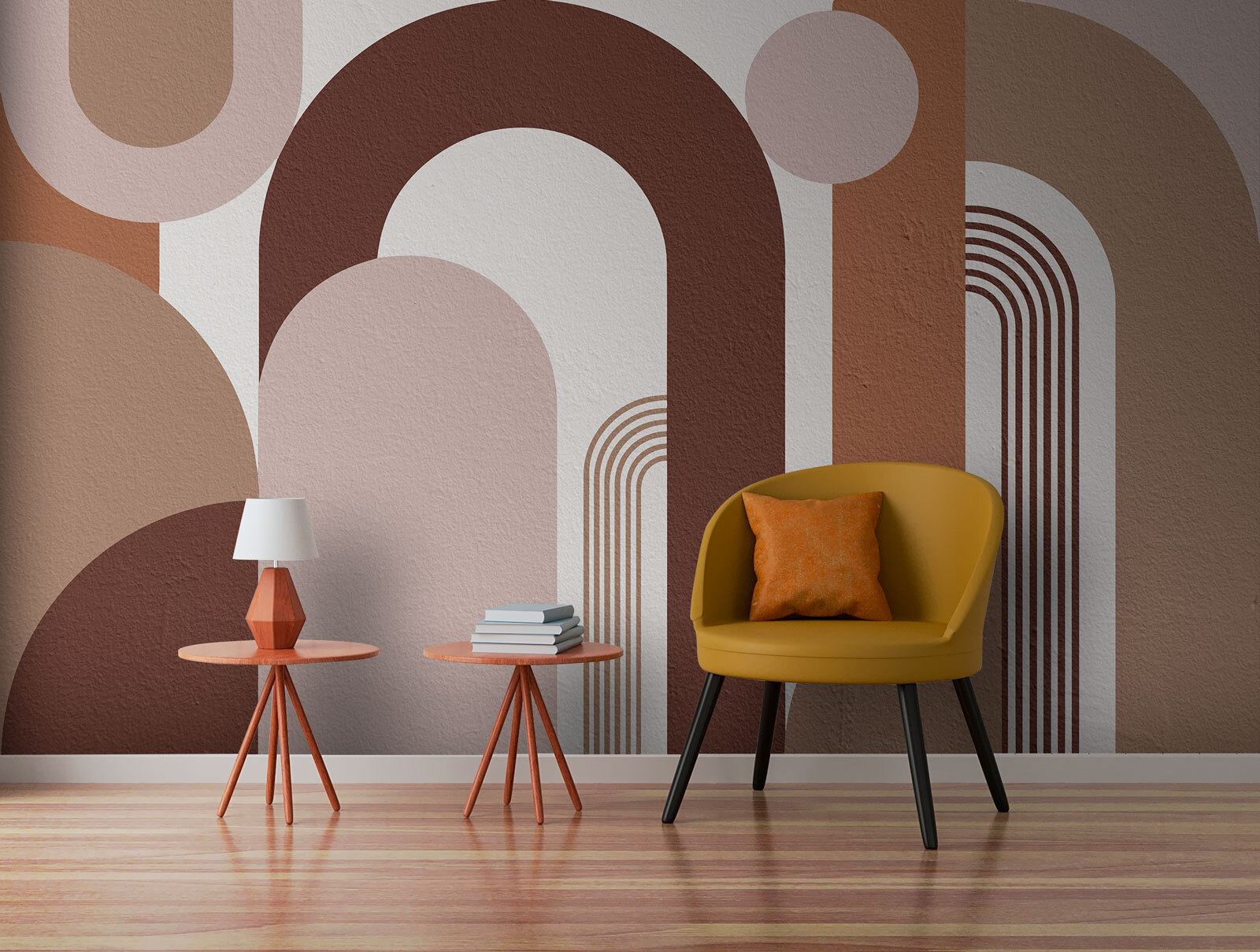 Wil je je leefruimte opfleuren? Dan is deze muurschildering met abstracte geometrische vormen in aardetinten precies wat je zoekt. Stel je voor dat je lekker gaat zitten met een kopje thee terwijl deze zachte bogen en ronde vormen in terracotta, beige en mokka een rustgevende achtergrond creëren. Het is alsof je je muren in een warme knuffel omhult. Perfect om een vleugje moderne flair toe te voegen zonder te schreeuwerig te zijn. Het heeft een hippe, aardse uitstraling waardoor elke kamer verfijnd en toch uitnodigend aanvoelt. Ideaal voor vermoeide effen muren die wel wat persoonlijkheid kunnen gebruiken. Installeer de muurschildering in je woon- of slaapkamer en zie hoe het de ruimte verandert in een gezellige, stijlvolle plek. Pak deze muurschildering en laat je muren praten – ze hebben veel te vertellen!