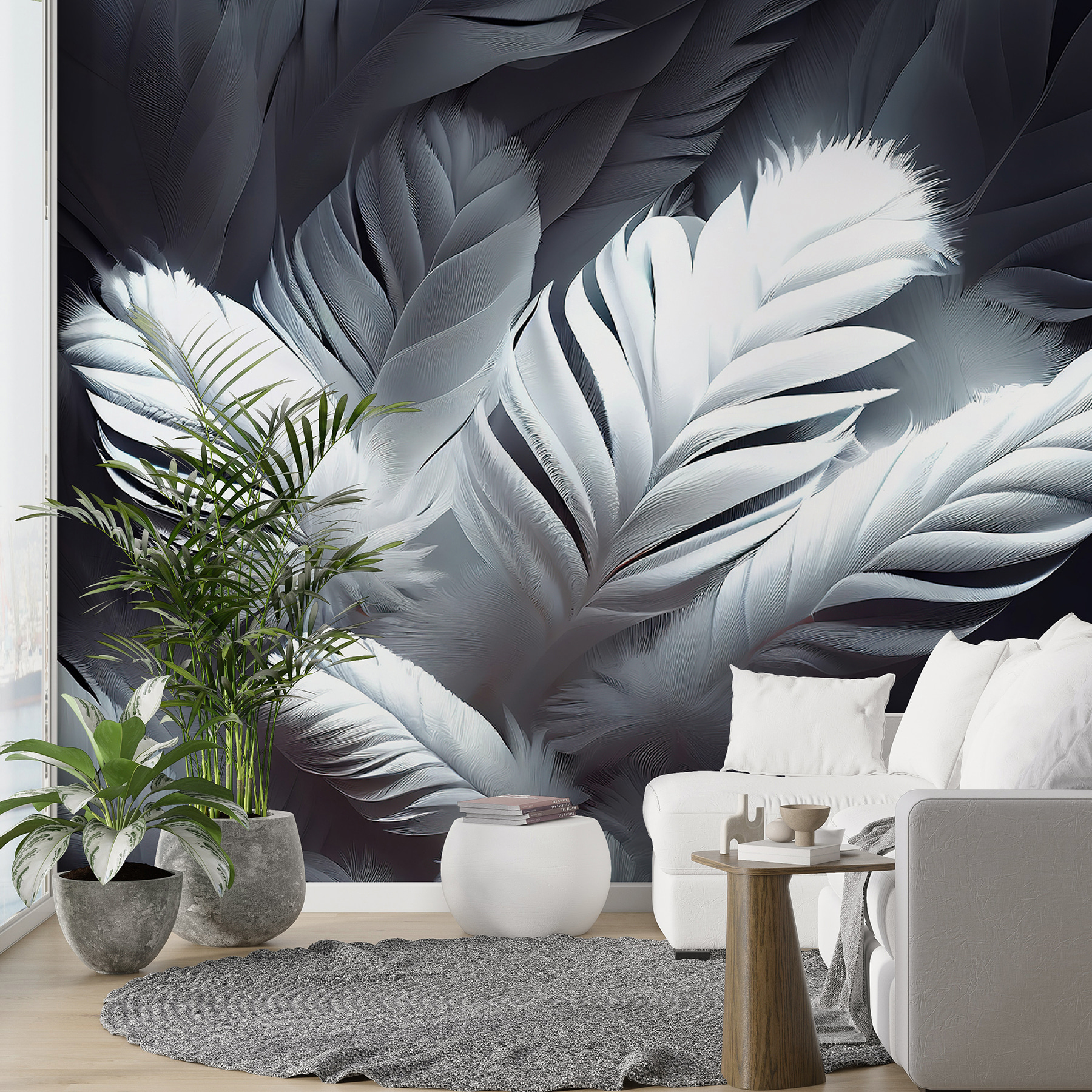 Transformeer een kamer met “Soft White Feathers in Gentle Layers”, waar elegantie en eigenzinnigheid elkaar ontmoeten. Stel je voor dat je een ruimte binnenstapt die fluisterlicht aanvoelt, met delicate veren die over de muren dansen. Deze muurschildering voegt een dromerig tintje toe, waardoor zelfs de drukste dag een beetje serener aanvoelt. Stel je gezellige avonden voor, loungend in een op veren geïnspireerd toevluchtsoord, nippend aan thee en verdwalend in een goed boek. Het is alsof je de hemel naar binnen haalt – geen slechte deal, toch? Met elke blik nodigt deze muurschildering uit tot ontspanning, waardoor een huis net iets specialer aanvoelt.