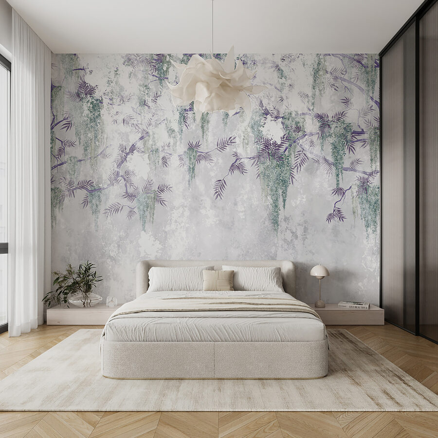 Tover elke kamer om in een serene ontsnapping met deze betoverende muurschildering van een mistig bos versierd met delicate hangende wijnranken. Stel je voor dat je een dromerig bos binnenstapt, waar de zachte tinten je aantrekken en de stilte je omhult als een knusse deken. Ideaal voor wie hunkert naar een vleugje natuur binnenshuis. De zachte kleuren van deze muurschildering kunnen een saaie muur opfleuren zonder overheersend te zijn. Stel je voor dat je hier aan je ochtendkoffie nipt of tot rust komt na een lange dag, terwijl het gefluister van het bos om je heen een vredige sfeer opwekt. Het is alsof je een stukje van de rustige buitenlucht bij je thuis hebt. Perfect voor wie houdt van een unieke inrichting met een twist!