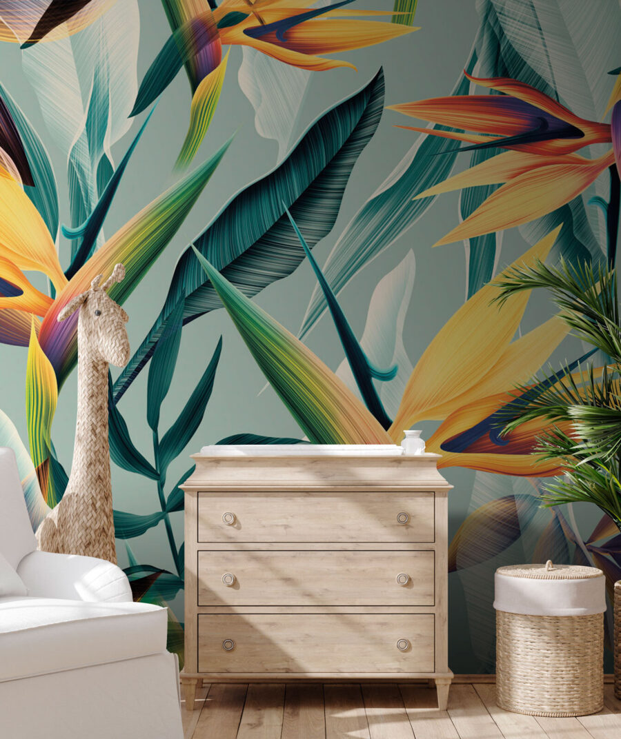 Heb je iets met unieke decoraties? Kijk dan eens naar de muurschildering “Birds of Paradise”. Dit is niet zomaar een stuk, het is een ervaring, alsof je een levendig jungleparadijs binnenstapt. Stel je voor dat je elke dag wakker wordt met die betoverende kleuren en ingewikkelde gebladerte! Het maakt deel uit van onze Designer Wallpaper collectie, die moderne kunst combineert met de wilde schoonheid van de natuur.