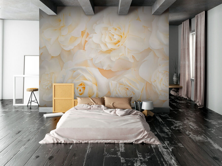 Transformeer elke muur met deze prachtige muurschildering met zachte bloemblaadjes in crèmewitte bloemen. Stel je voor dat je een kamer binnenloopt waar deze delicate bloemen een statement maken zonder een woord te zeggen. Dit behang is perfect voor liefhebbers van bloemen en brengt een vleugje natuur binnenshuis zonder dat je echte planten hoeft te onderhouden. Stel je voor dat je thee drinkt, omringd door deze serene schoonheid, waardoor zelfs de eenvoudigste momenten speciaal aanvoelen. Het heeft die moeiteloze charme waardoor een ruimte direct meer uitnodigend aanvoelt. Een stukje rust in huis. Wie zou dat niet willen?