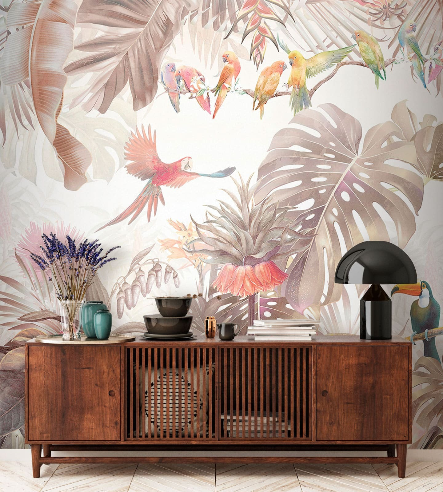 De mix van kleuren is zowel rustgevend als stimulerend – perfect voor elke ruimte die een vleugje eigenzinnigheid en reislust nodig heeft. Vrienden die op bezoek komen, zullen het gevoel hebben dat ze regelrecht in een tropisch oord zijn beland. Wie kan er nou niet een beetje jungle-gevoel in zijn leven gebruiken? Perfect voor dierenliefhebbers en mensen die hunkeren naar een beetje wild bij hen thuis. Probeer het, leef een beetje – je muren zullen je dankbaar zijn!