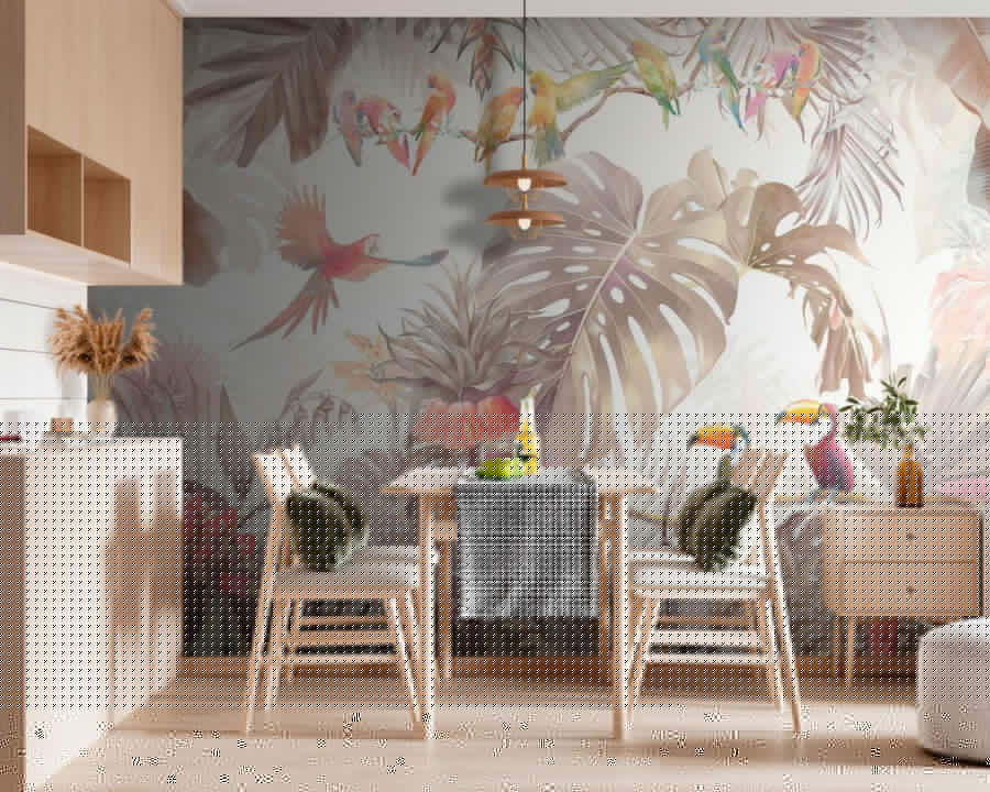 Hallo daar! Stel je dit eens voor: een prachtige muurschildering met tropische vogels tussen weelderig groen. Het is net een stukje paradijs in je woonkamer. Stel je voor dat je na een lange dag thuiskomt en begroet wordt door levendige papegaaien en toekans genesteld in exotisch gebladerte. Het is niet zomaar een muur – het is een mini-ontsnapping naar een tropisch woud!