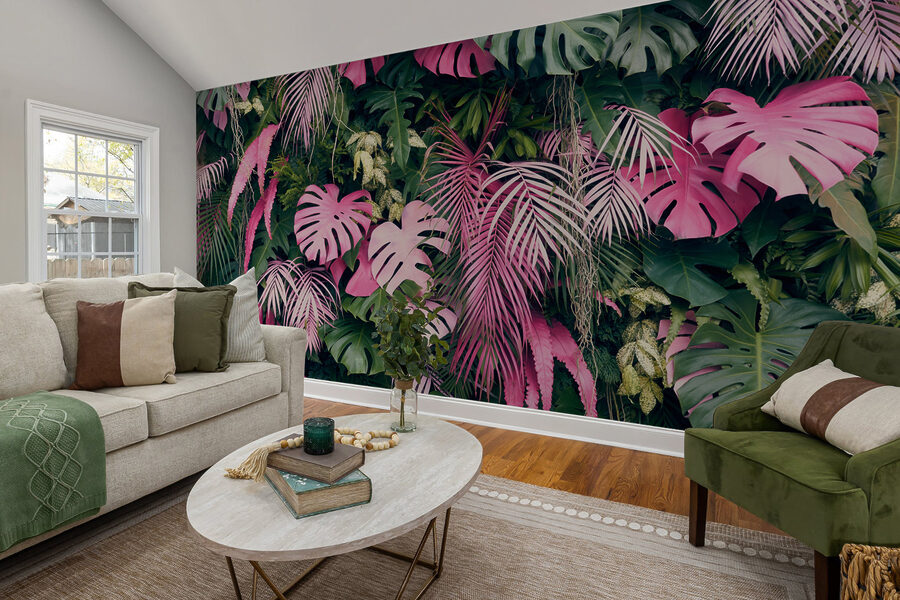Tover elke kamer om in een levendig paradijs met de muurschildering “Pink Leaf with Holes”. Stel je voor dat je een weelderig tropisch toevluchtsoord binnenstapt in je eigen huis, waar elke blik voelt als een mini-vakantie. De levendige mix van roze en groene bladeren voegt een speels tintje toe en geeft je meteen een opgewekt gevoel. Het is alsof je in de natuur rondhangt zonder insectenspray! Perfect voor een gezellige woonkamer of een pittig kantoor. Stel je voor dat je aan je koffie nipt, omringd door deze mix van kleuren en even de drukte van buiten vergeet. Het brengt leven, warmte en een vleugje plezier aan elke muur.