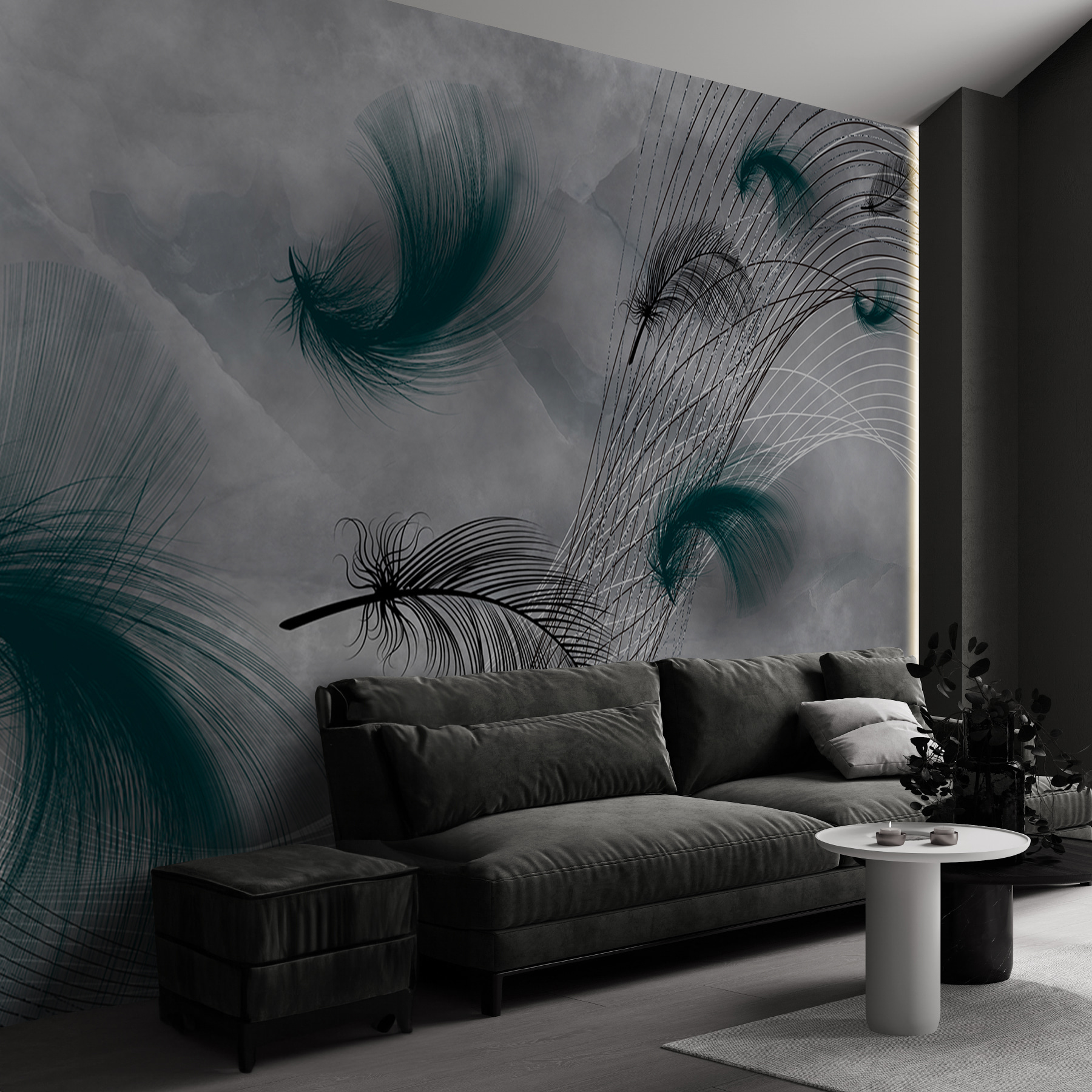 Tover je muren om in een dromerige ontsnapping met de Fotobehang Feather in the Sky. Stel je voor dat je door je kamer wandelt en plotseling wordt meegevoerd op een zacht briesje van gevederde elegantie. Die tere flarden groenblauw dansen tegen een zachte grijze achtergrond en creëren een serene sfeer die je omarmt als een warme knuffel. Het is de perfecte gespreksstarter – stel je vrienden voor die zich verwonderen over de etherische charme terwijl ze discussiëren of ze liever een dutje doen op een wolk of koffie drinken in een knus hoekje. Het opknappen van een kamer hoeft niet als een karwei te voelen; het kan een klein avontuur zijn. Kijk maar eens hoe deze muurschildering de sfeer verhoogt en een vleugje eigenzinnigheid toevoegt aan elke ruimte. Of het nu een slaapkamer is of een creatieve werkruimte, deze muurschildering nodigt uit tot dagdromen en vredige momenten, waardoor elke blik een moment van gelukzaligheid wordt.