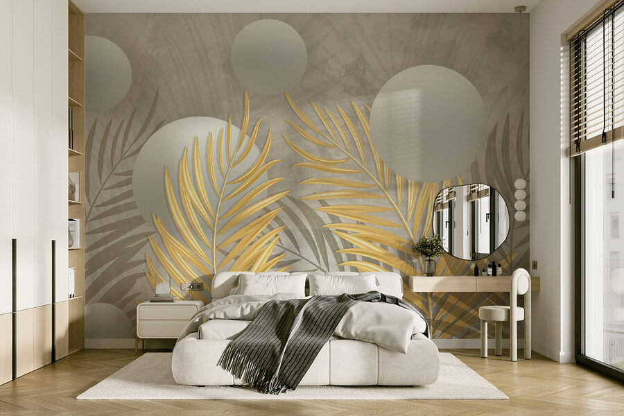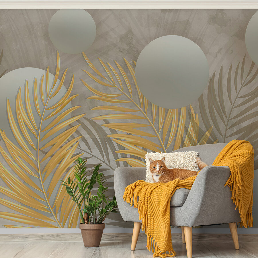 Verander elke muur in een gespreksonderwerp met deze prachtige muurschildering. Stel je eens voor dat je een kamer binnenloopt waar gladde bollen lijken te zweven op een dromerige achtergrond, omringd door delicate bladeren die over het oppervlak dansen. Dit ontwerp is perfect voor een gezellige leeshoek of een chique studio en geeft een moderne sfeer zonder het contact met de natuur te verliezen. Het is alsof je een vleugje zonlicht in huis haalt, waardoor zelfs sombere dagen helderder aanvoelen. Vrienden zullen willen weten waar het vandaan komt en wie houdt er niet van een vleugje natuur? Je zult glimlachen telkens als je langsloopt. Het is niet alleen decor; het is een ervaring!