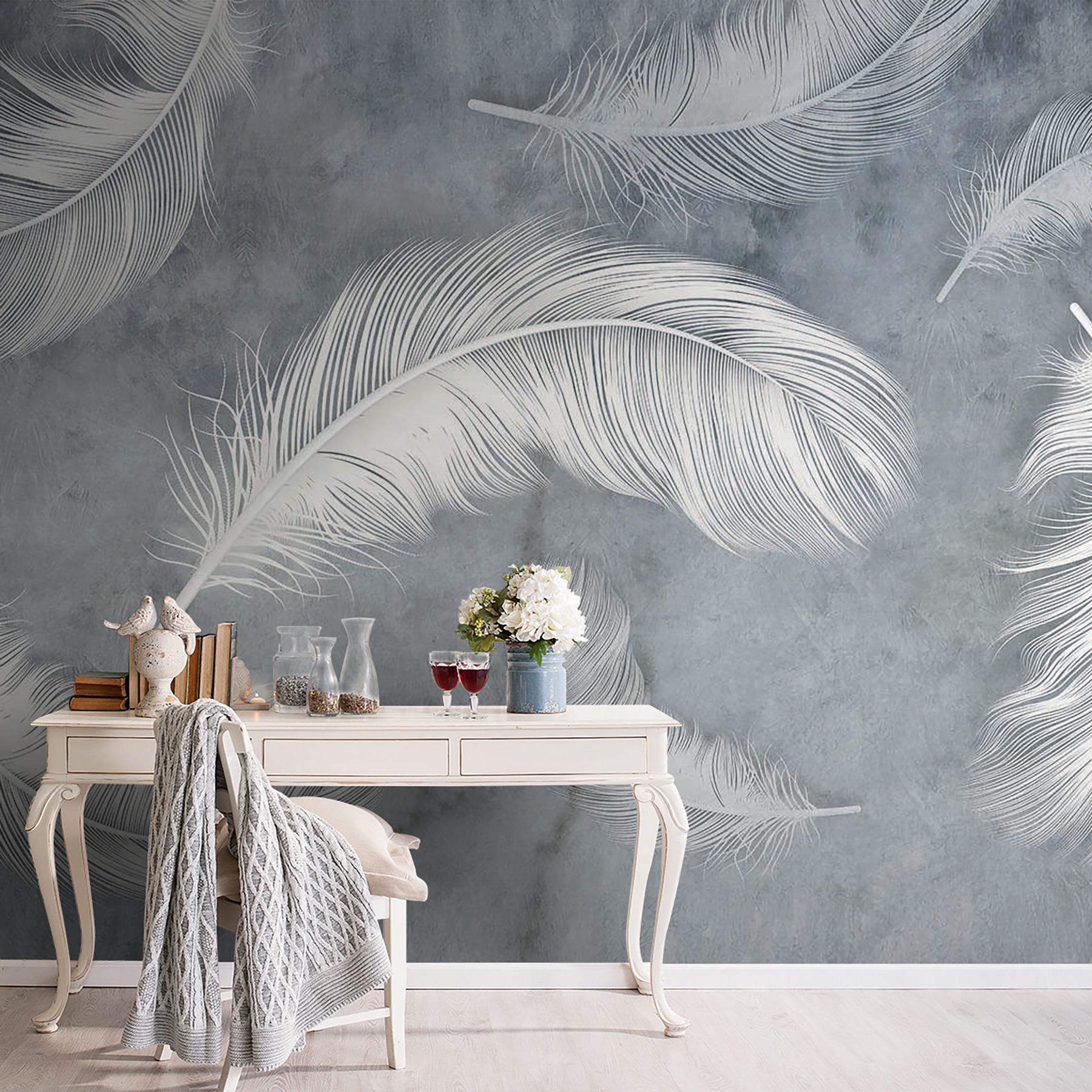 Stel je voor dat je een kamer binnenstapt en het gevoel hebt dat je in een serene oase bent beland, dankzij de delicate veren die sierlijk tegen een zachte achtergrond zweven. Deze muurschildering brengt een vleugje natuur binnenshuis, perfect voor diegenen die houden van een vleugje eigenzinnigheid in hun inrichting. Zie het voor je in een gezellig leeshoekje of een rustige slaapkamer, waar de zachte beelden kunnen inspireren tot dagdromen en momenten van rust. Elke blik doet je denken aan een rustige wandeling door een park. Het is een subtiele toets die vreugde en creativiteit opwekt zonder de zintuigen te overweldigen. Perfect voor wie op zoek is naar een unieke manier om zijn stijl uit te drukken en het toch licht en luchtig te houden!
