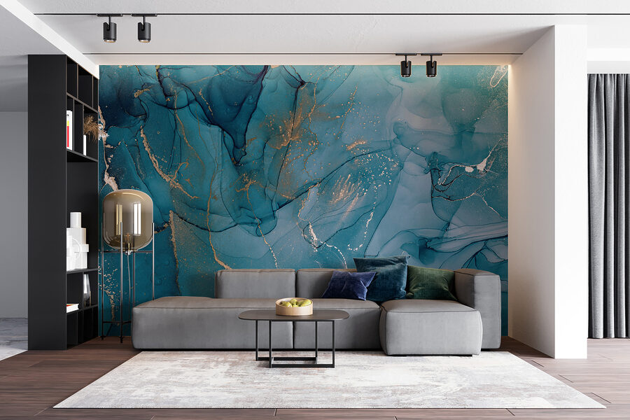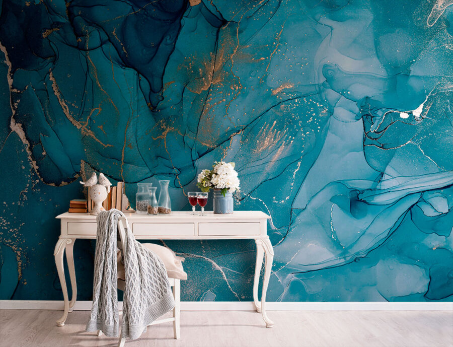 Een ruimte transformeren is alsof je er een frisse wind laat waaien, en dat is precies wat deze muurschildering doet! Stel je een gezellig hoekje van je huis voor, versierd met wervelende blauwtinten die bijna aanvoelen als een kalme zeebries. Het ontwerp danst met subtiele accenten die opvallen zonder overdreven te zijn en creëert een sfeer die rustgevend en toch stijlvol is. Vrienden zullen misschien even stoppen en denken, “Wow, waar heb je dat gevonden?”. Perfect voor de woonkamer of een creatieve werkplek, het nodigt uit tot een gesprek en geeft inspiratie. Het is meer dan alleen maar decor; het is een klein kunstwerk dat aanzet tot dagdromen en dat elk moment in die kamer mooier maakt. Wie wil er nu niet omringd worden door zo’n koele, serene schoonheid?