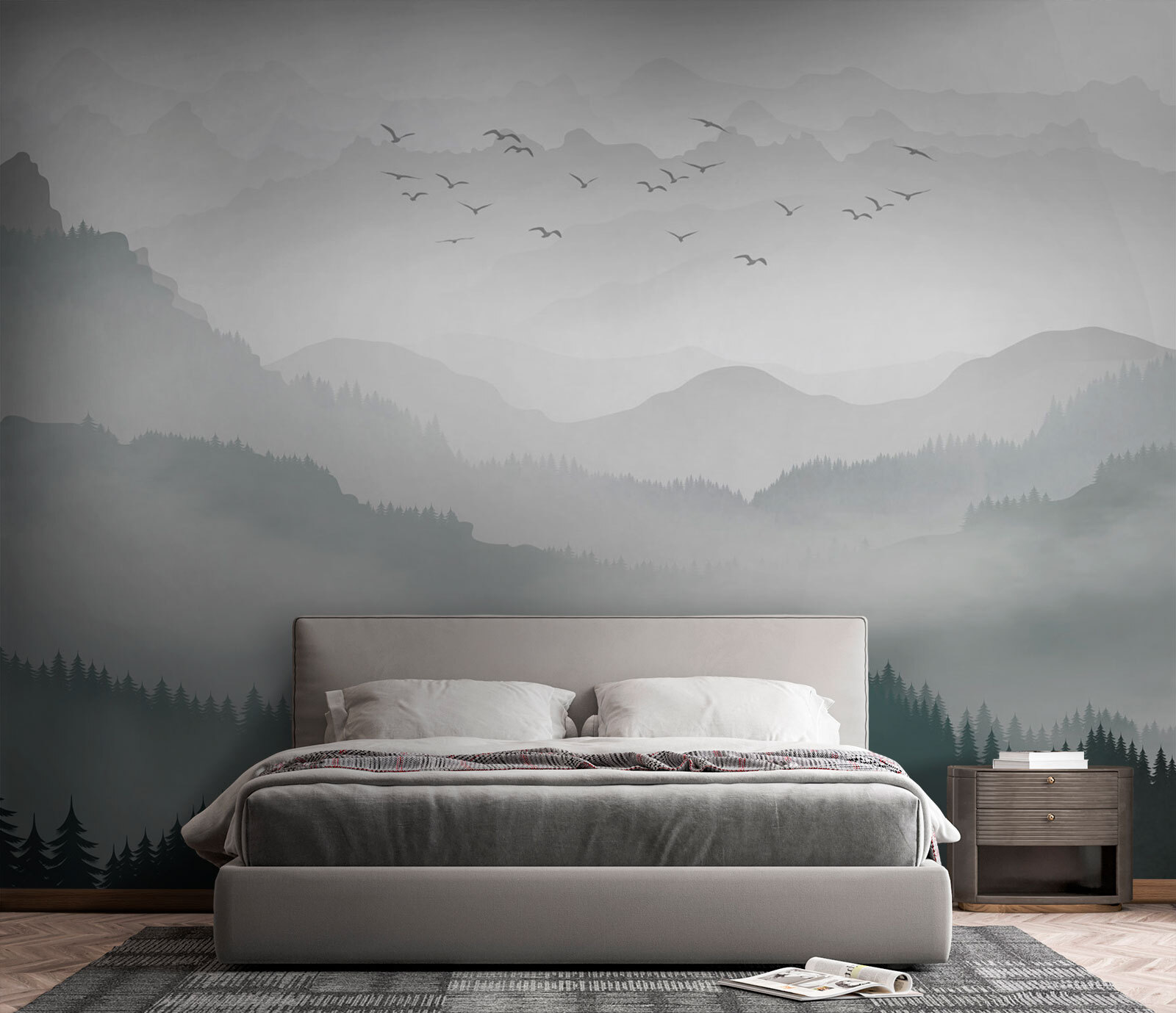 Maak van elke kamer een serene plek met de muurschildering “Flock of Birds Flying in the Sky”. Stel je voor: je loopt je kamer binnen en boem, daar is het – een adembenemend tafereel van de zachte lucht en glooiende bergen, vogels zweven er vrij bovenuit. Het is alsof je een stukje natuur in huis haalt, zonder modderige laarzen of insecten. De rustgevende grijstinten kunnen zelfs de meest chaotische dag een vredig gevoel geven. Stel je voor dat je hier aan je ochtendkoffie nipt, terwijl de wereld een beetje zachter aanvoelt. Perfect voor mensen die houden van kunst die leven en rust in hun huis brengt. Het is niet alleen decor; het is een uitnodiging om tot rust te komen en te dromen. Wees niet verbaasd als gasten even stoppen om het uitzicht te bewonderen – want wie zou dat niet doen?
