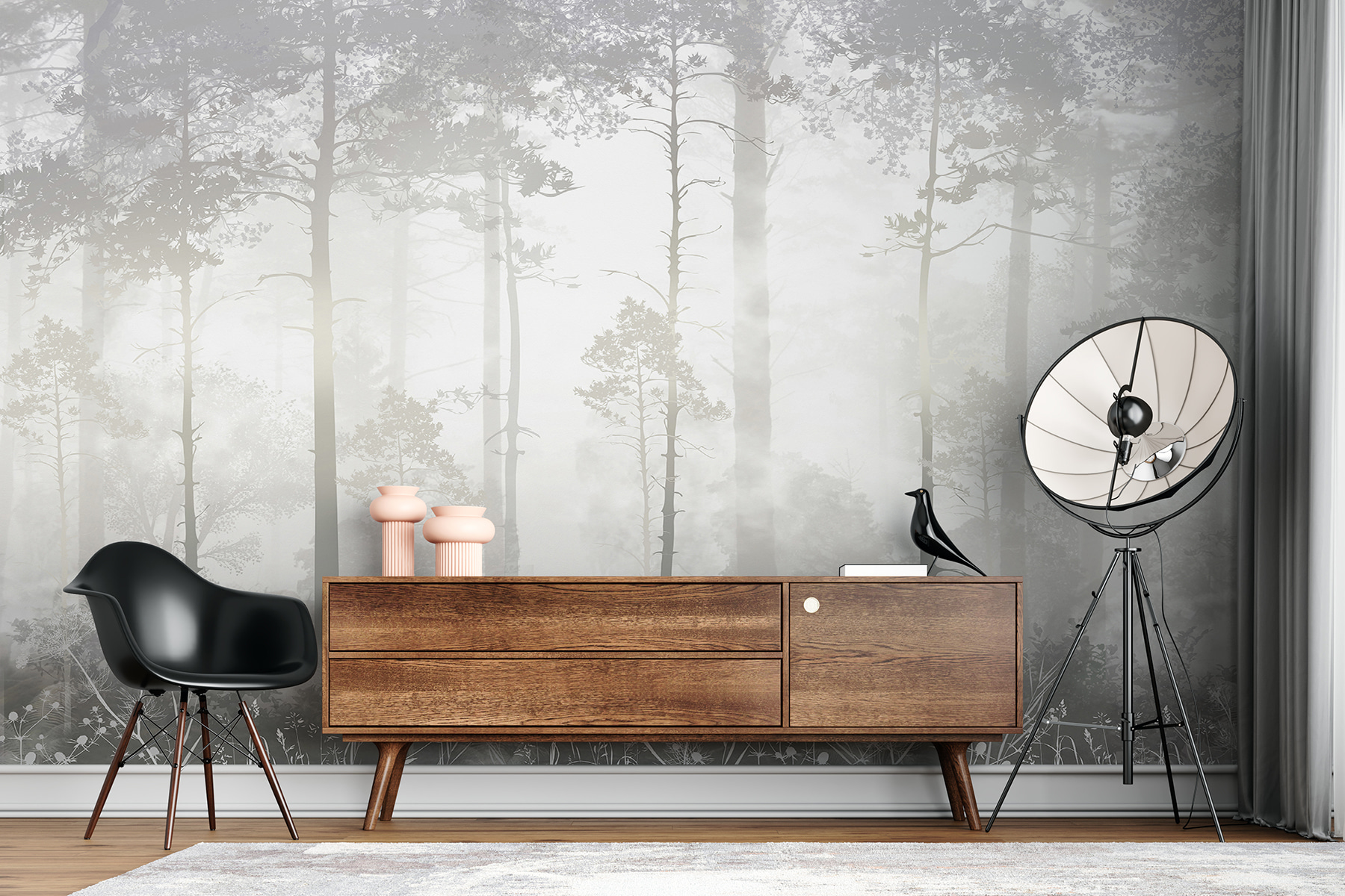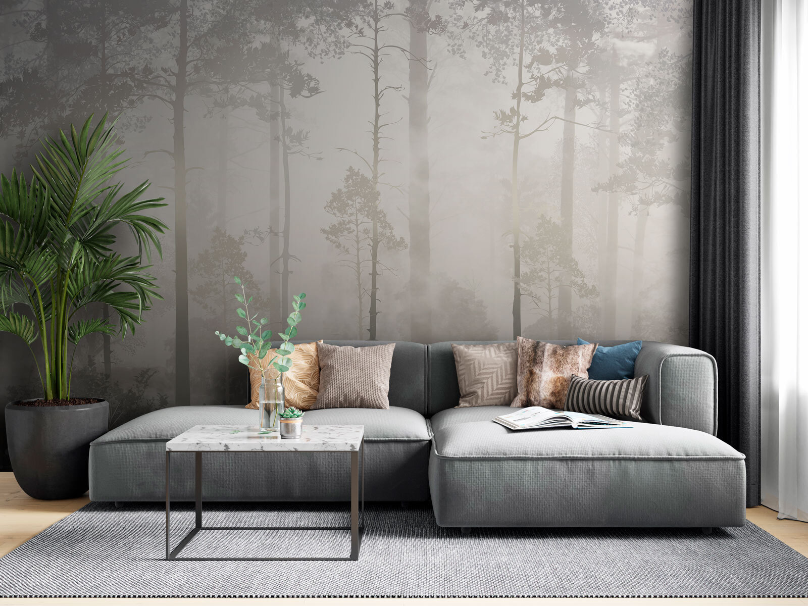 Stap in een dromerige ochtend met deze Foggy Forest muurschildering. Het is alsof je wakker wordt in een sereen bos waar de zon door de mist piept en alles een beetje magisch aanvoelt. Stel je gezellige ochtenden voor met een kopje koffie terwijl je naar de zachte silhouetten van de bomen staart. De zachte tinten creëren een rustgevende sfeer, perfect om tot rust te komen of om je creativiteit te stimuleren. Of het nu je woonkamer is of een rustig leeshoekje, deze muurschildering nodigt uit tot rust in elke ruimte. Bovendien zal het zeker indruk maken op vrienden – wie wil er nou geen stukje natuur in huis? Stel je voor welke verhalen deze muurschildering kan vertellen!
