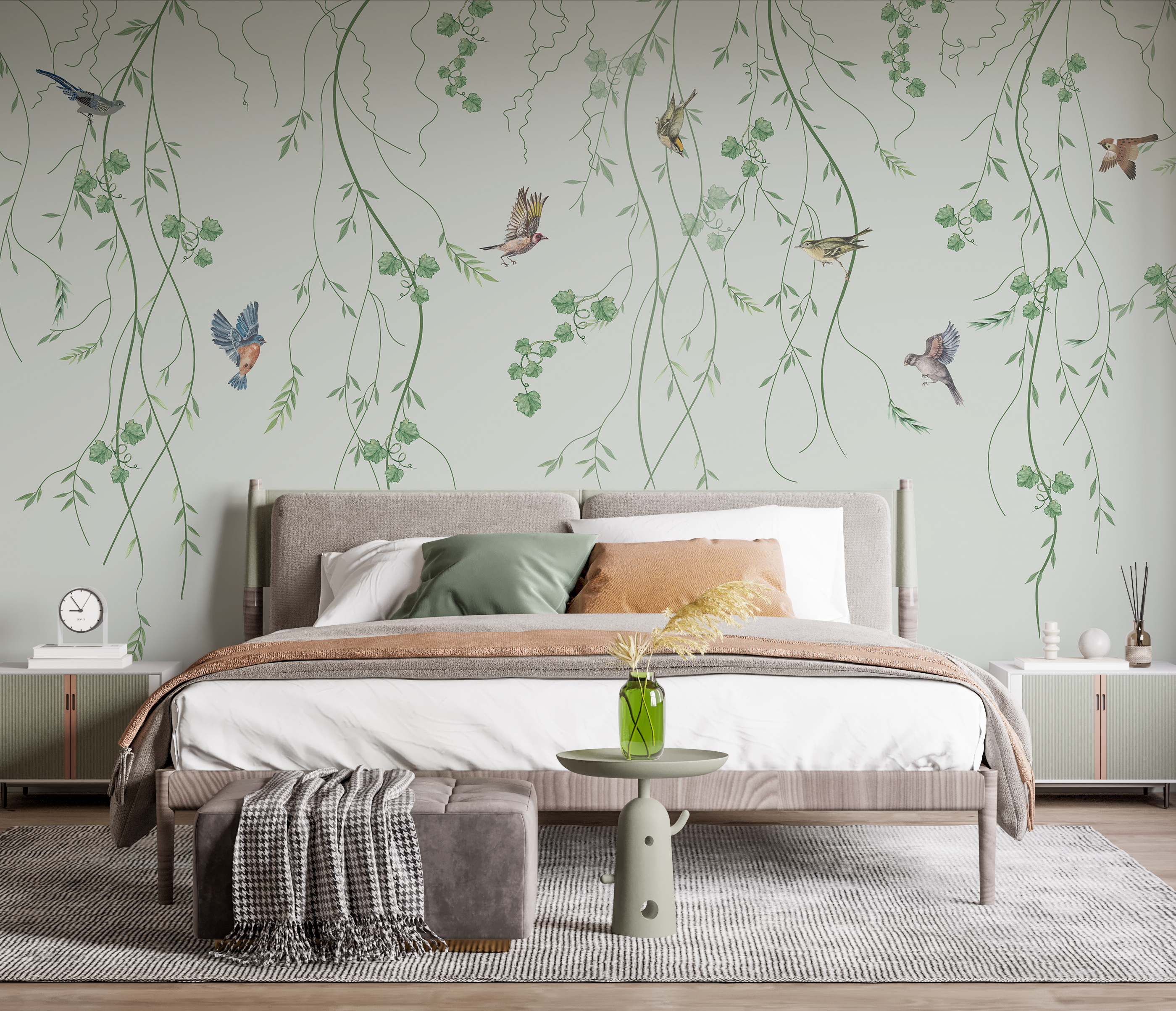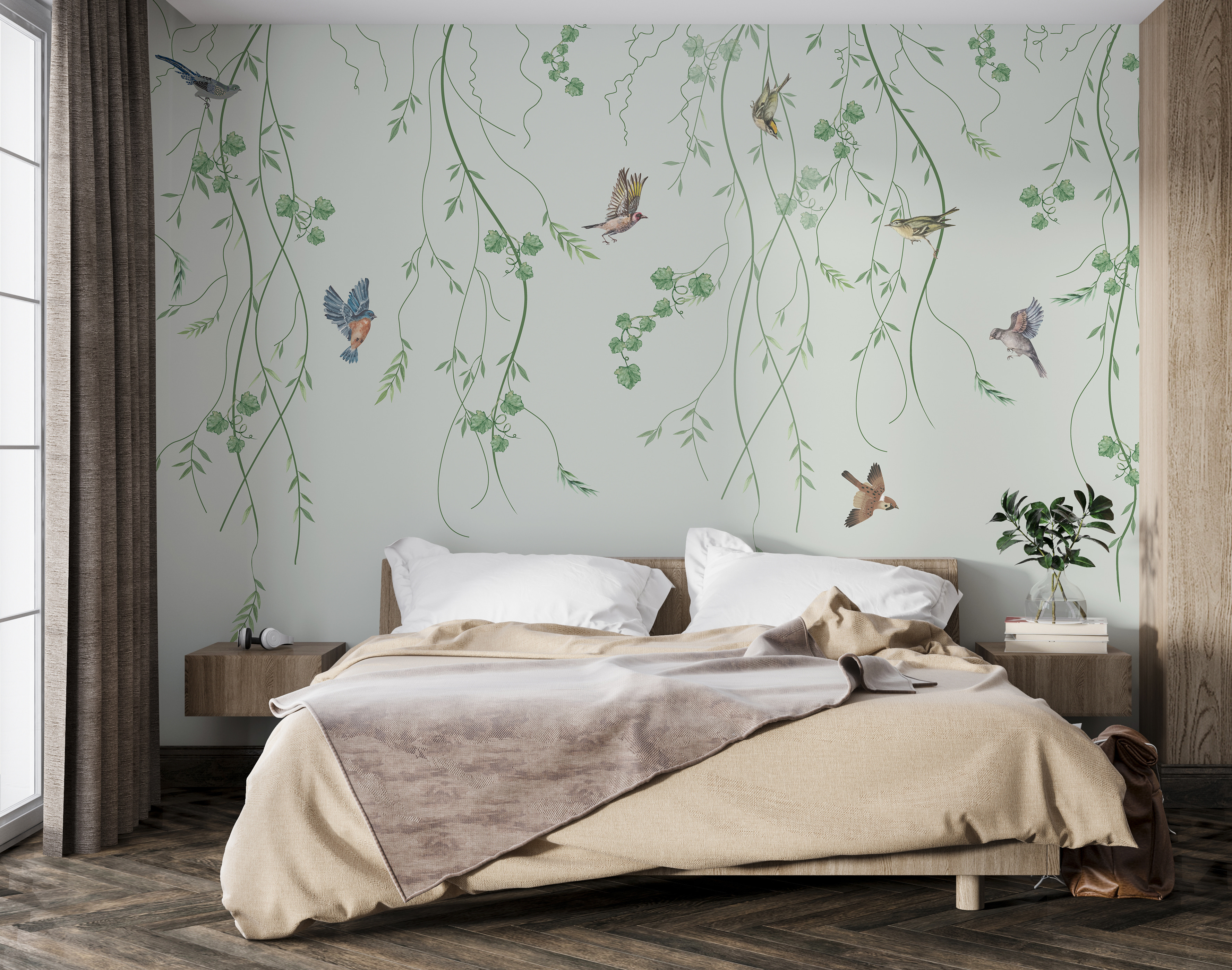 Stel je voor dat je de frisheid van een buitentuin naar binnen haalt – en dat allemaal terwijl je van je ochtendkoffie nipt. “Fotobehang Birds Flying Among Hanging Vines” is net alsof je een stukje natuur aan je muur hangt. Vogels in volle vlucht, weelderige lianen die bungelen – gewoonweg prachtig. Je zou bijna denken dat ze leven. Perfect voor een woonkamer, slaapkamer of zelfs een thuiskantoor. Het heeft die serene, rustgevende sfeer waar we allemaal naar verlangen na een lange dag. Gezellig en toch elegant. Het soort dat je doet glimlachen telkens als je er voorbij loopt. En een beetje charme van de natuur? Altijd een goede idea❤️