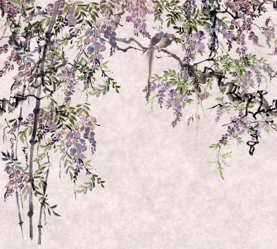 Je moet deze “Muurschildering van vogels op een tak” bekijken! Stel je voor dat je ‘s ochtends aan je koffie nipt onder een bloeiend bladerdak, met delicate vogels die je een serenade brengen vanaf hun takken. Dat is de sfeer die deze muurschildering uitstraalt – vredig en betoverend. De zachte lila en groene tinten zijn als een zacht gefluister van de lente, perfect om elke kamer tot leven te brengen.
