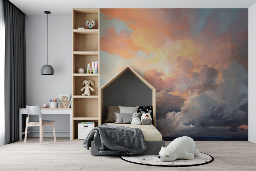 Perfect voor de speelruimte van een kind, de kamer van een tiener of zelfs een chique woonruimte die een vleugje moderne flair nodig heeft. Deze muurschildering voelt zich overal thuis waar je jong van hart bent. Of je nu inspiratie opdoet voor toekomstige roadtrips of gewoon dagdroomt over de open weg, dit stuk voegt een vleugje verhalenboekmagie toe aan elke kamer. Plus, de vage lijnen en vloeiende kleuren maken het een ontspannende achtergrond om tot rust te komen, zoals kijken naar voorbij drijvende wolken op een luie middag.