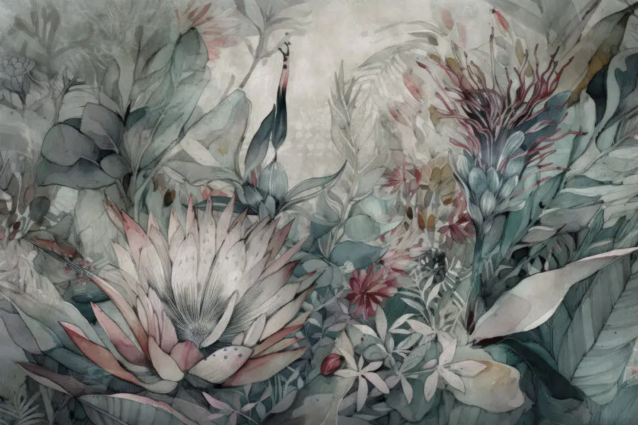 Fotobehang Delicate bloemenillustratie met subtiele tinten Fotobehang Delicate bloemenillustratie met subtiele tinten