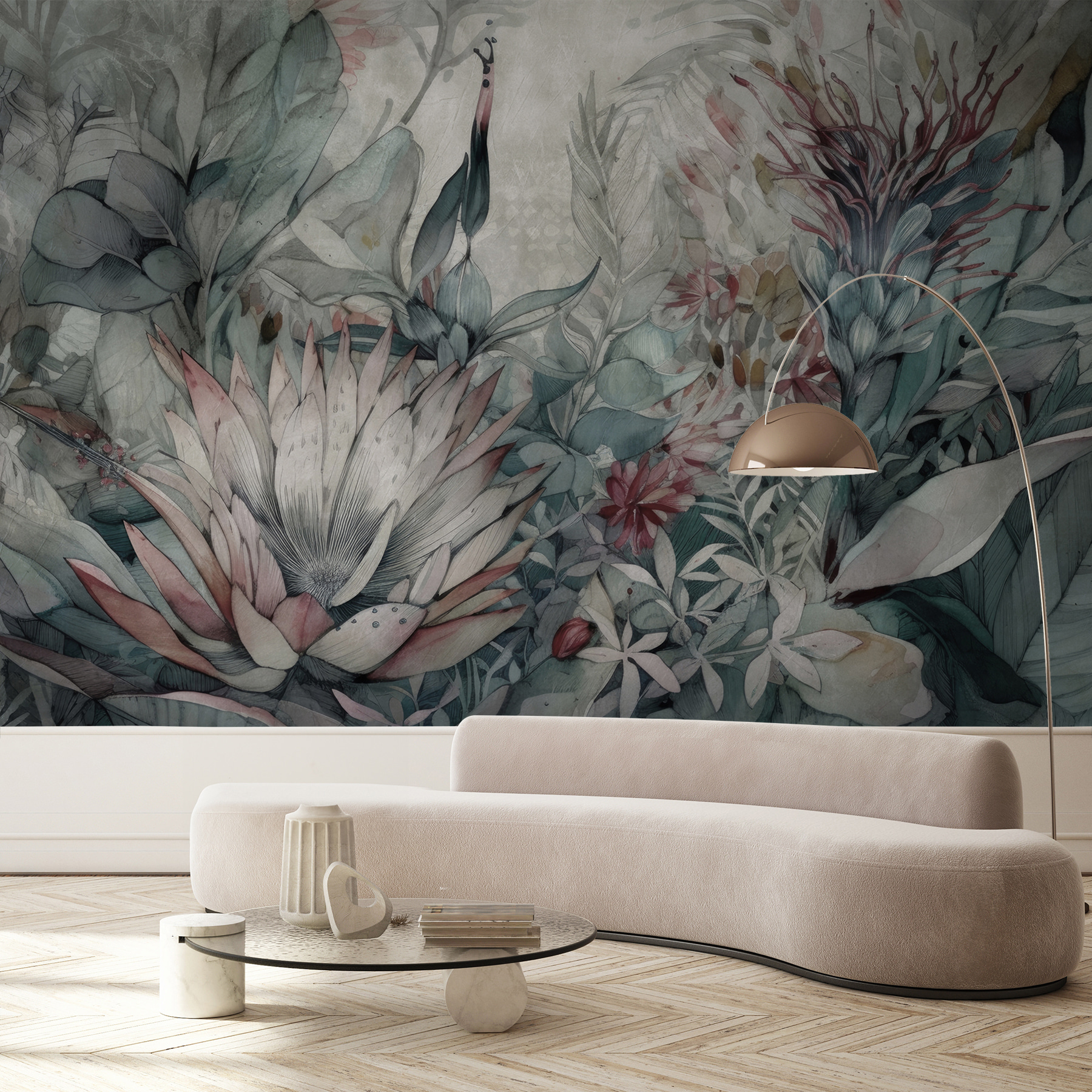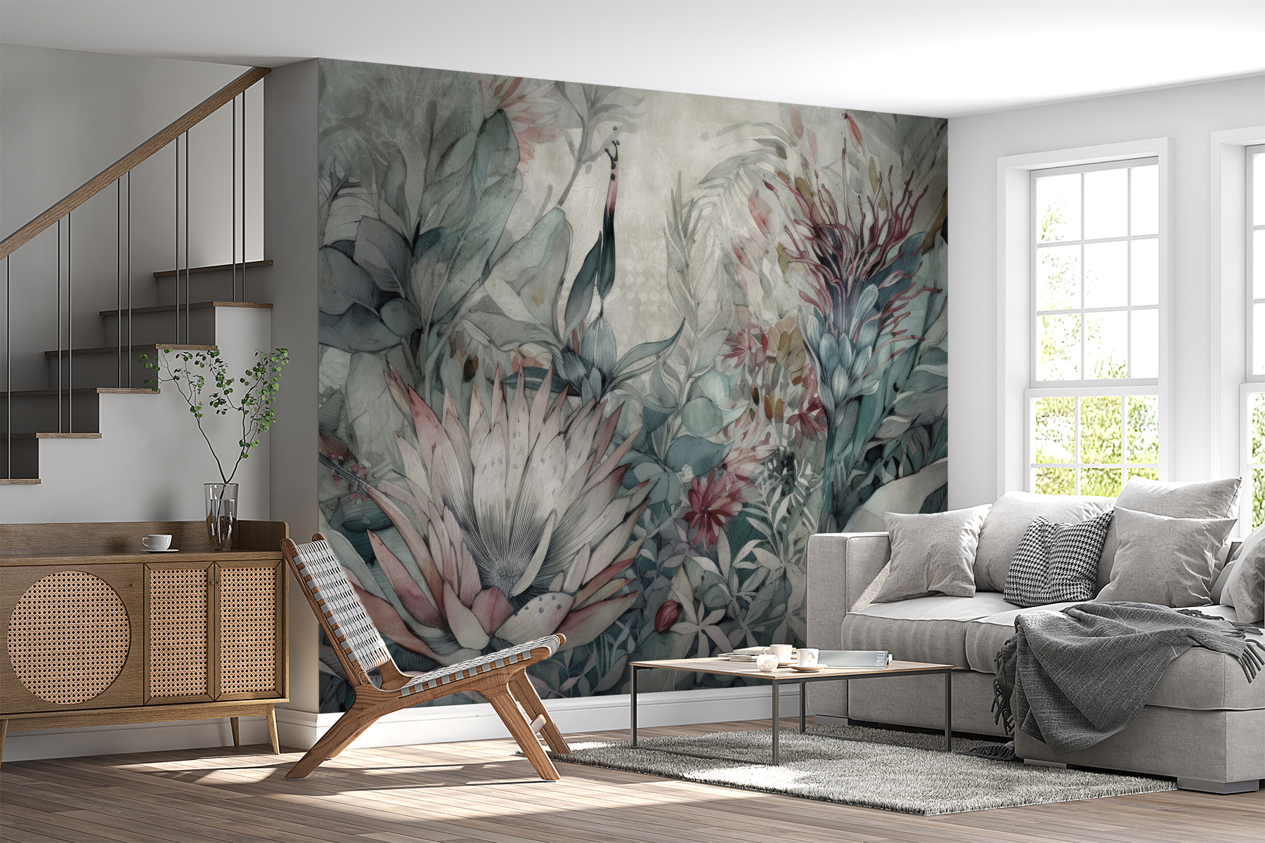 Stap in een betoverende droom met de muurschildering “Delicate Floral Illustration”. Deze muurschildering is perfect voor iedereen die houdt van een vleugje eigenzinnigheid in hun inrichting en brengt je meteen in een rustgevende jungletuin. Stel je exotische vogels en weelderige bloemen voor – allemaal in zachte, rustgevende tinten. Het is alsof je een geheim tropisch hoekje hebt, waar alles zacht en vredig is.