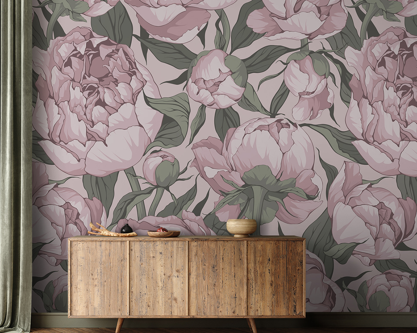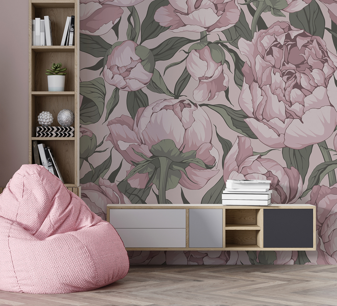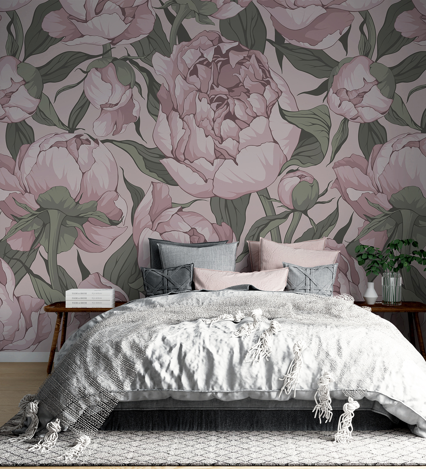 Dromerige, vintage charme! Deze “Vintage Pink Peony Floral Pattern” muurschildering is pure elegantie. Je kamer voelt meteen aan als een gezellige, bloeiende tuin. De zachtroze pioenrozen zijn weelderig, bijna alsof je hun bloemblaadjes zou kunnen aanraken. Perfect om wat bloemenfantasie te brengen in een woonkamer, slaapkamer of zelfs een leuk café-plekje. Stel je voor dat je hier elke dag mee wakker wordt – het is als een zachte knuffel van de natuur. Bovendien symboliseren pioenen romantiek en voorspoed. Dus het is niet alleen prachtig, het heeft ook goede vibraties!