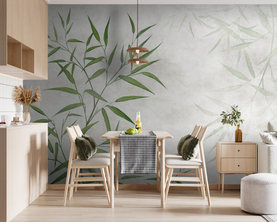 Een kamer transformeren hoeft geen groot project te zijn, toch? Deze muurschildering met groene bladeren tegen een zachte achtergrond doet dat moeiteloos. Stel je voor dat je een ruimte binnenloopt die meteen sereen en fris aanvoelt, bijna alsof je een rustgevend bos binnenstapt – gelukkig zonder de muggen. De subtiele tinten nodigen uit tot een adem van rust, perfect voor een gezellige leeshoek of een levendige keuken vol geklets. Probeer het eens; het is alsof je de natuur in huis haalt zonder het vuil en het onderhoud. Gewoon een kopje thee erbij en het is zalig!