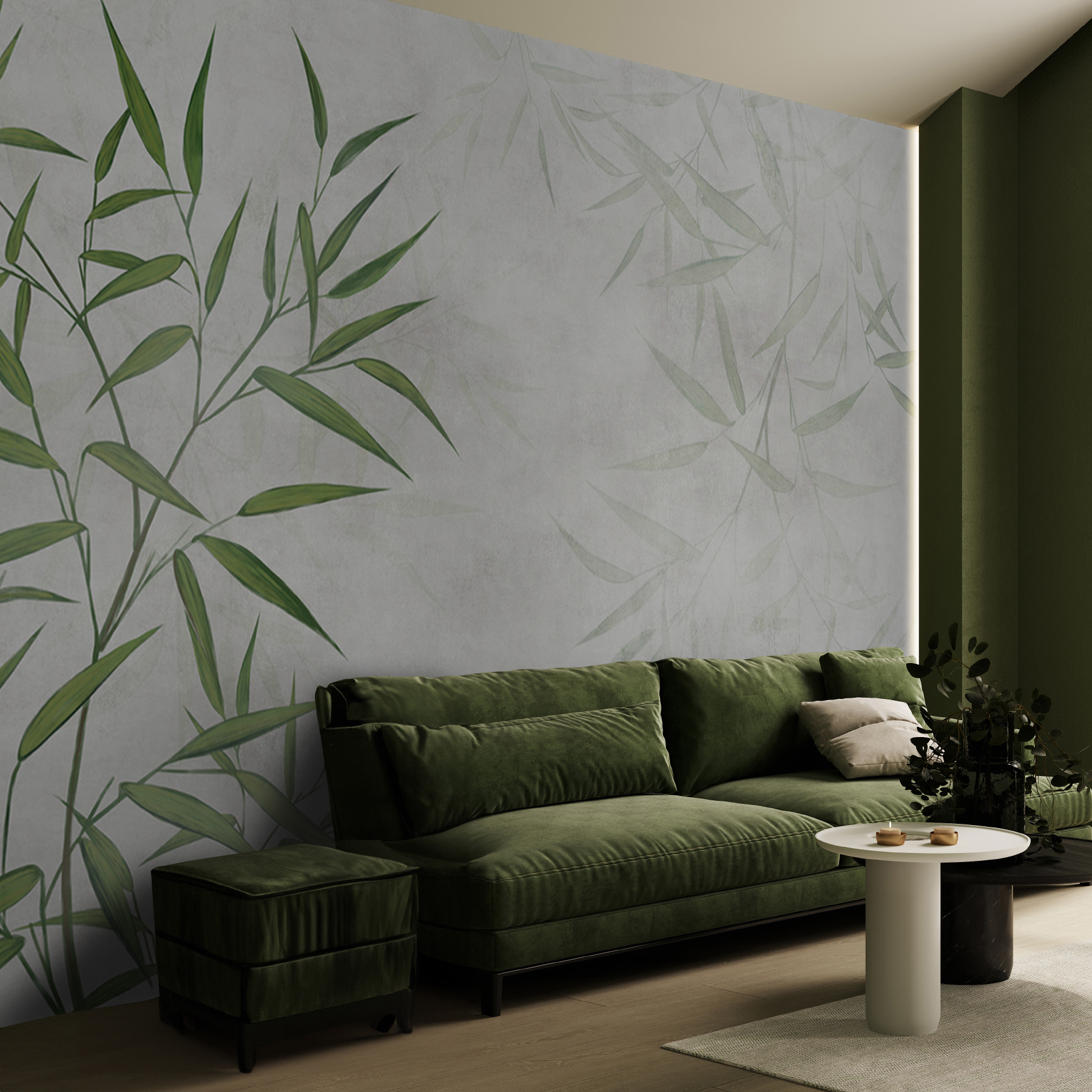Een kamer transformeren hoeft geen groot project te zijn, toch? Deze muurschildering met groene bladeren tegen een zachte achtergrond doet dat moeiteloos. Stel je voor dat je een ruimte binnenloopt die meteen sereen en fris aanvoelt, bijna alsof je een rustgevend bos binnenstapt – gelukkig zonder de muggen. De subtiele tinten nodigen uit tot een adem van rust, perfect voor een gezellige leeshoek of een levendige keuken vol geklets. Probeer het eens; het is alsof je de natuur in huis haalt zonder het vuil en het onderhoud. Gewoon een kopje thee erbij en het is zalig!