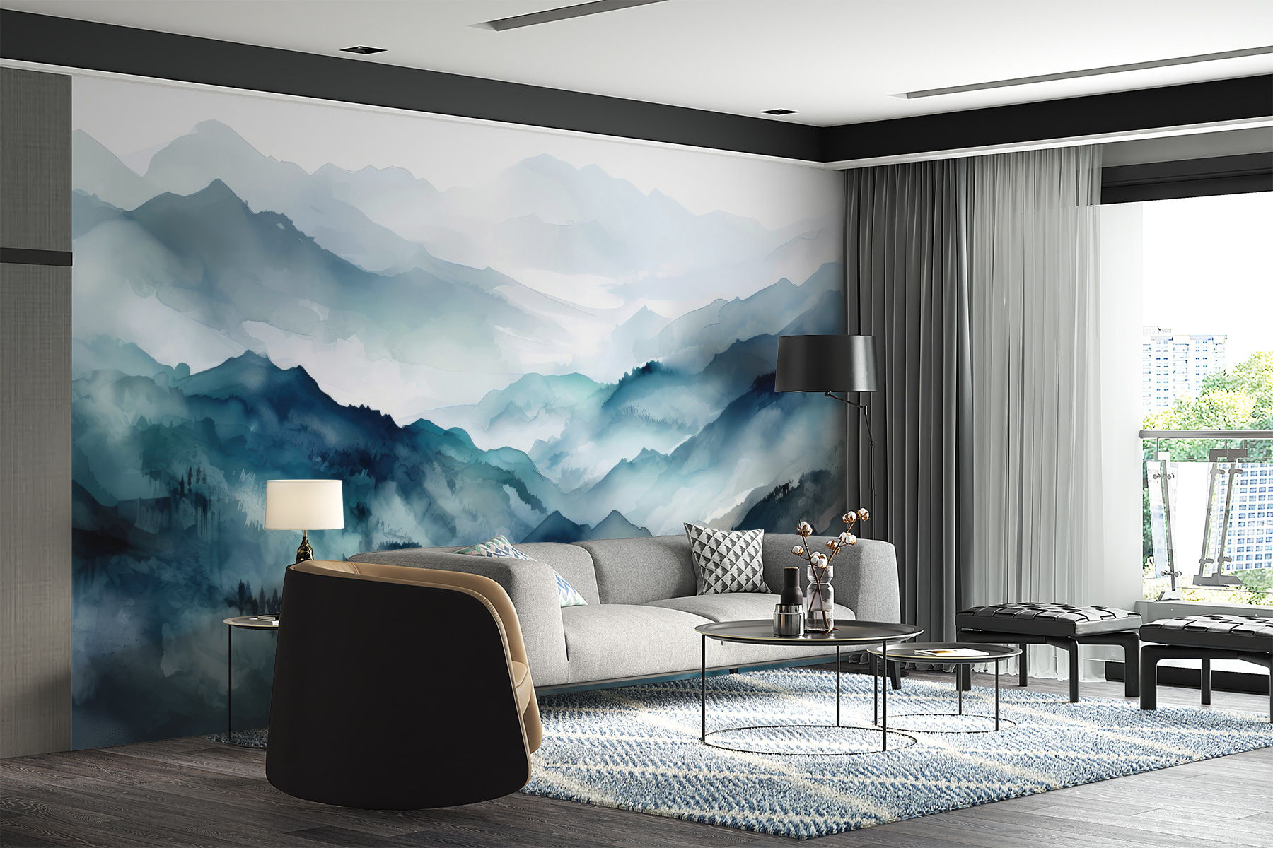 Transformeer je ruimte met deze prachtige muurschildering met mistige bergen die geheimen van rust lijken te fluisteren. Stel je voor dat je achterover leunt op je bank, warme koffie in je hand, en verdwaalt in die zachte blauwe en groene tinten. Het is alsof je een stukje natuur in huis haalt, zonder de vervelende insecten en het onvoorspelbare weer. Of het nu een gezellig leeshoekje is of een levendige woonkamer, deze muurschildering nodigt elke dag uit tot sereniteit en een vleugje avontuur. Perfect voor dagdromers en natuurliefhebbers, het zal zeker een gesprek op gang brengen, gegarandeerd!