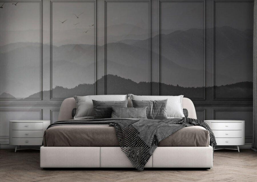 Een ruimte transformeren kan zo eenvoudig zijn als het ophangen van een muurschildering, en deze heeft precies de juiste sfeer. Stel je een gezellige kamer voor waar zachte rook dwarrelt binnen een opvallend wit kader, wat een vleugje mysterie en allure geeft. Stel je voor dat je ‘s ochtends aan je koffie nipt, naar die mistige bergen staart en je gedachten laat afdwalen naar verre paden en avonturen. Deze muurschildering is niet zomaar muurdecoratie; het is een ticket naar dagdromen. Perfect om diepte en een vleugje dramatiek toe te voegen aan woonkamers of studeerhoeken, het inspireert creativiteit terwijl het moeiteloos elegant blijft.