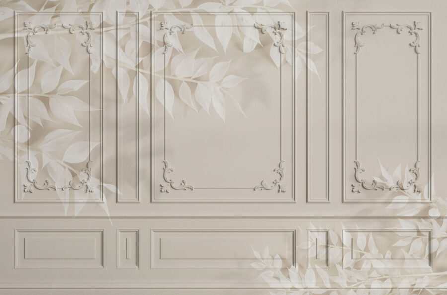 Een kamer omtoveren kan zo eenvoudig zijn als een muurschildering, en deze muurschildering heeft een unieke charme die precies goed aanvoelt. De witte deur met een zwarte rand creëert een opvallend middelpunt, perfect voor wie een vleugje elegantie wil toevoegen zonder te overdrijven. Stel je voor: je woonkamer voelt ineens frisser en verwelkomt bezoekers met een vleugje verfijning. De delicate bladpatronen fluisteren de natuur in en nodigen uit tot een kalme sfeer die perfect is om tot rust te komen na een lange dag. Het is alsof je een vredige tuin in huis haalt. Het is een kunstwerk dat niet schreeuwt, maar je inrichting zachtjes in de richting van iets speciaals duwt. Stel je voor dat je aan een kopje koffie nipt en je geïnspireerd voelt door die zachte rondingen en zachte tinten! Het is niet zomaar behang; het is een conversatiestarter.