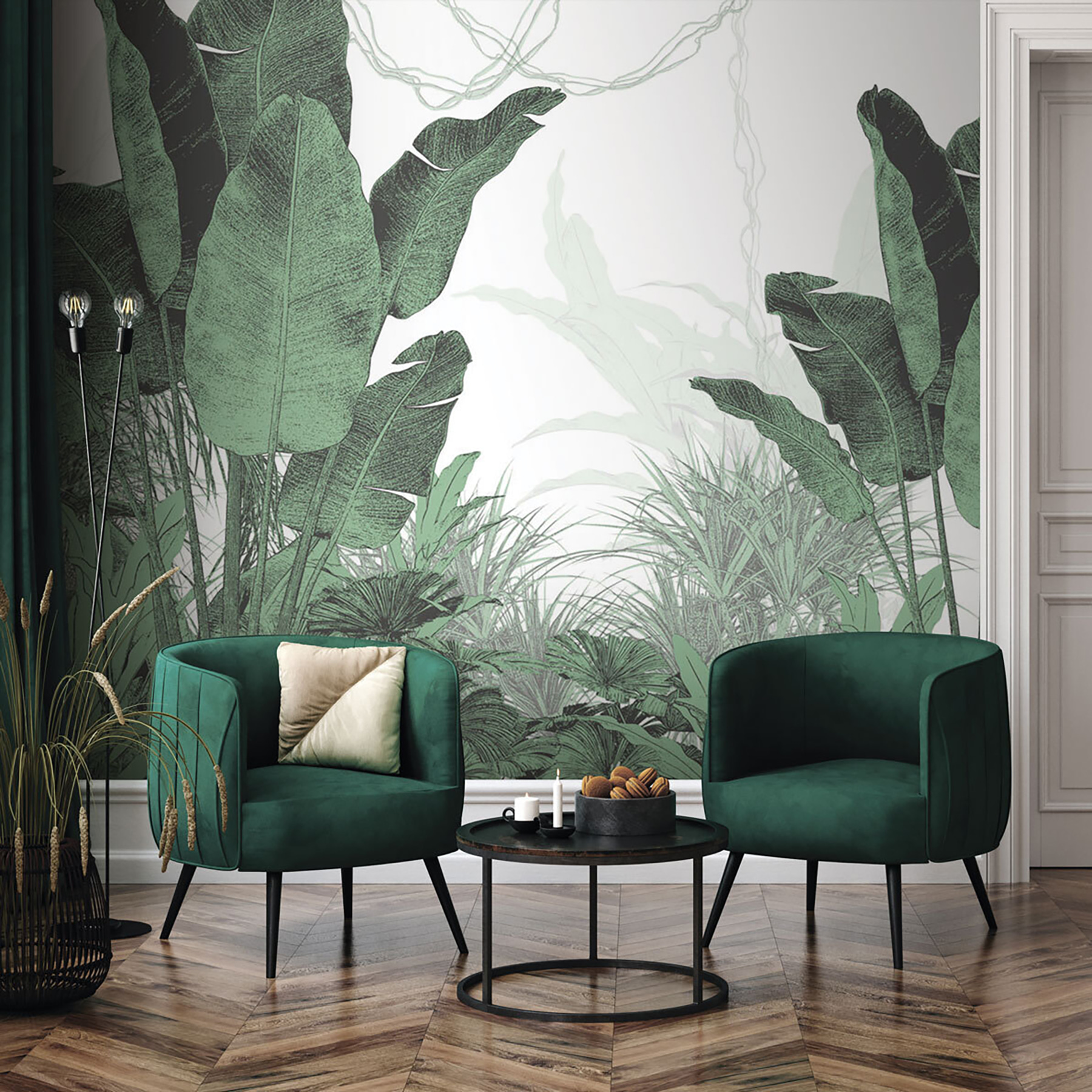 Verander je ruimte in een levendige oase met de muurschildering “Lush Greenery”. Denk aan weelderig, tropisch gebladerte op je muur – het is alsof je een jungle binnenstapt zonder de vochtigheid. Deze muurschildering is perfect om een vleugje natuur toe te voegen aan elke kamer en brengt rustgevende, groene bladeren die je doen vergeten dat je binnen bent. Stel je voor dat je ‘s ochtends aan je koffie nipt, omringd door dit frisse, groene tafereel.