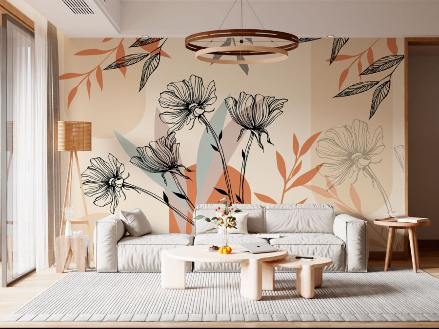 Stel je voor dat je een kamer binnenloopt en begroet wordt door deze prachtige muurschildering – “Zwart-wit tekening van een bloem”. Perfect voor liefhebbers van designerbehang en populaire muurschilderingen. Het heeft een moeiteloos chique uitstraling. Delicate zwart-witte bloemen dansen over een canvas van zachte tinten en voegen elegantie toe zonder je ruimte te overweldigen.