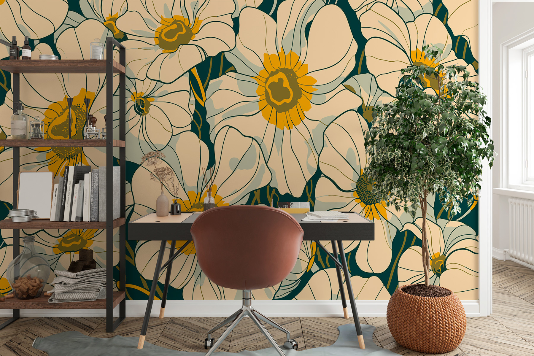 Tover elke kamer om in een bloeiende oase met deze prachtige muurschilderingen met bloemen met een zonnig hart. Het is alsof je een tuin in huis haalt zonder je zorgen te hoeven maken over water geven of vervelende bijen! Stel je voor dat je wakker wordt omringd door dit levendige landschap, waar elk bloemblaadje een geheimpje lijkt te fluisteren over de schoonheid van de natuur. Perfect voor elke ruimte, of het nu een gezellige woonkamer of een vrolijke kinderkamer is. Vrienden zullen zwijmelen over de vrolijke sfeer die het met zich meebrengt, en wie weet, misschien lokt het gesprekken uit over het beginnen van hun eigen indoor jungles. Waarom niet de sprong wagen en die muren opvrolijken?