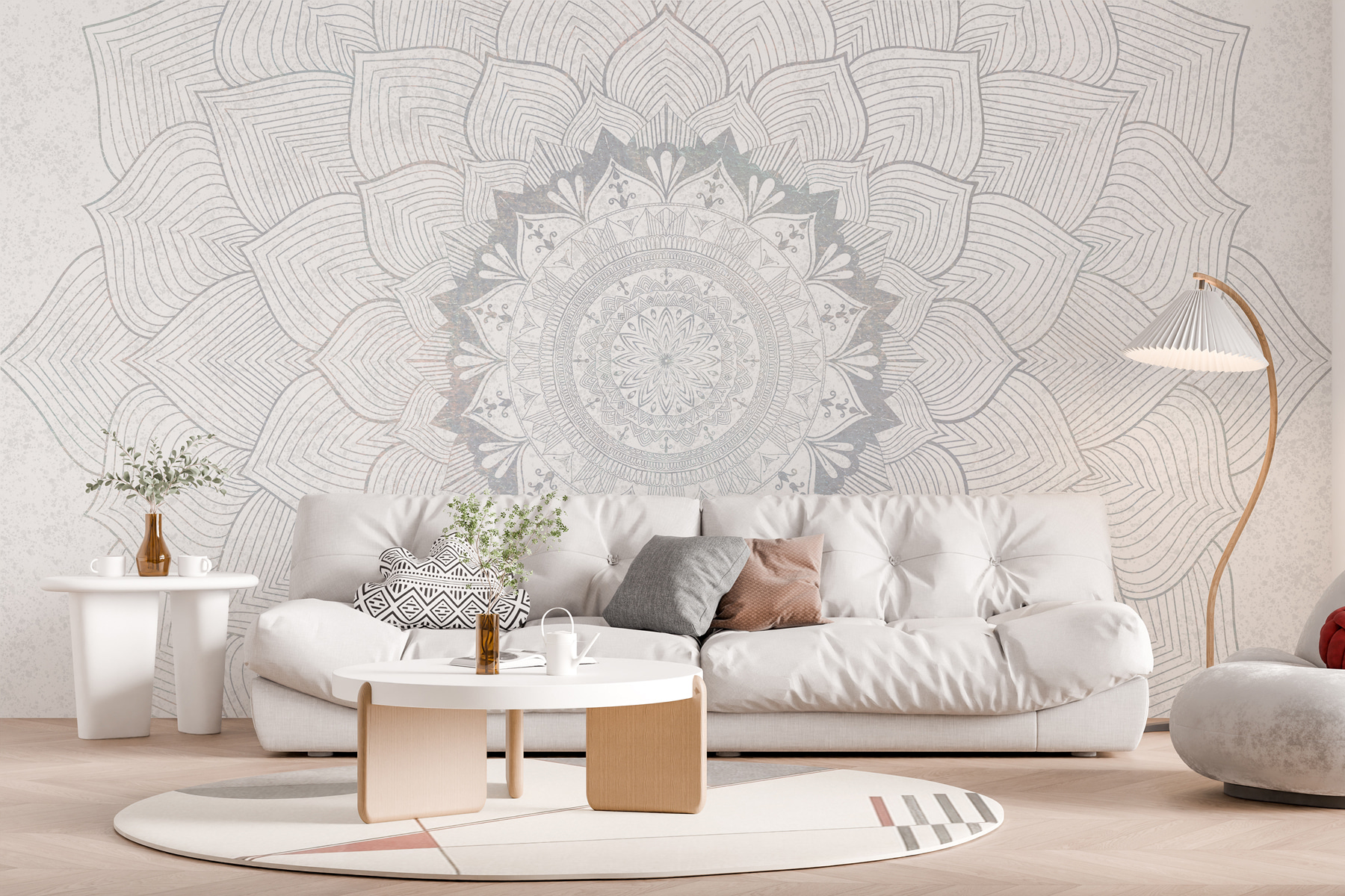 Verander een kamer in een serene oase met de Fotobehang White and Grey Mandala. Dit prachtige stuk brengt een gevoel van rust en focus, perfect voor gezellige leeshoekjes of levendige woonkamers. Stel je voor dat je lekker wegkruipt met een goed boek, terwijl je de ingewikkelde lijnen voelt die je naar binnen trekken. De zachte, wervelende patronen voelen bijna hypnotiserend aan en nodigen uit tot dagdromen of diep nadenken. Bovendien is het net een kleine ontsnapping telkens als je er langs loopt. Het is het soort behang waardoor je thee wilt drinken en wilt nadenken over de mysteries van het universum, of misschien gewoon over waarom de kat naar zijn spiegelbeeld staart. Een prachtige touch die je creativiteit wel eens zou kunnen aanwakkeren!