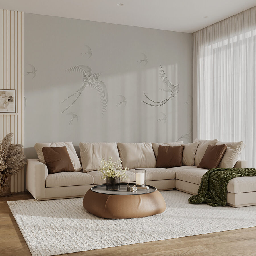 Deze muurschildering is niet alleen mooi, maar voegt een vleugje eigentijdse stijl toe die perfect is voor elke moderne ruimte. Bovendien is de muurschildering veelzijdig: hij past perfect in een kantoor aan huis of in een frisse slaapkamer. De zachte lijnen en zachte tinten geven de vogels het gevoel dat ze bijna tot leven komen, ze zweven in en uit met een gevoel van vrijheid dat aanstekelijk werkt.