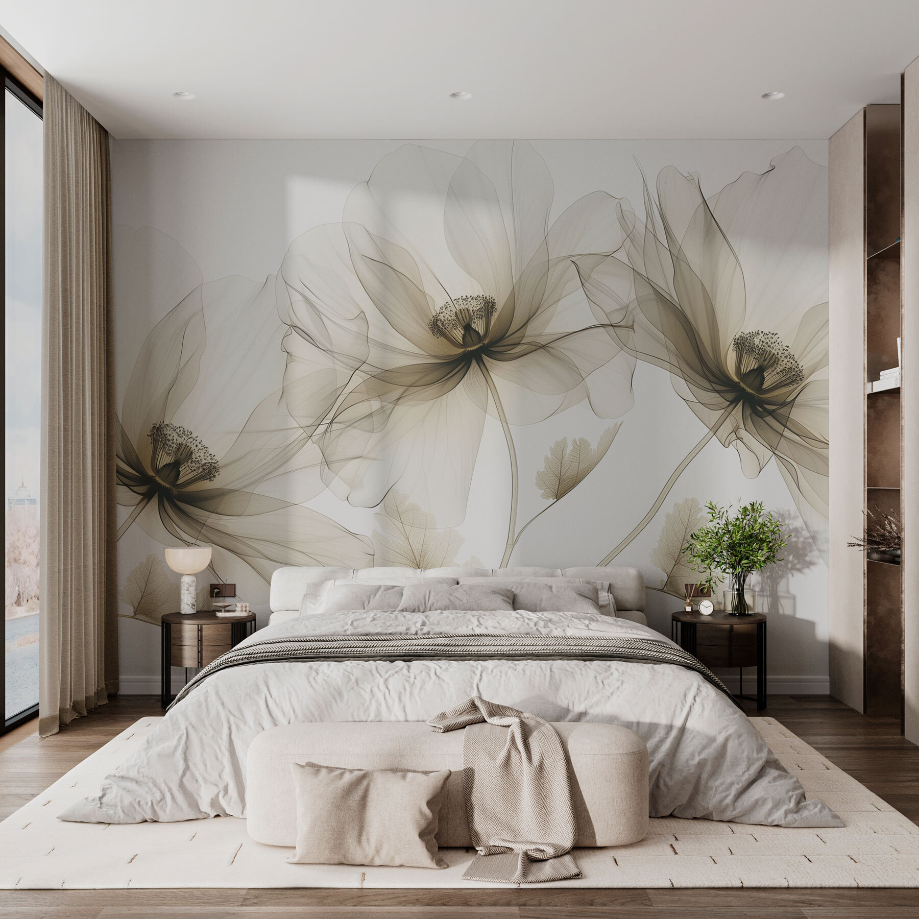 Hallo daar! Als je van muurdecoratie houdt die een statement maakt, dan heb ik iets voor je. Deze muurschildering, “Fotobehang w01482v2,” is als een frisse wind voor je muren! Plaats deze muurschildering in je woonkamer en het voelt alsof je in een dromerig bloemenlandschap aan het loungen bent. Die delicate, doorschijnende bloemen spelen met licht op de meest magische manier – ze lijken bijna te fladderen… Romantisch, toch? Stel je voor dat je een slechte dag hebt, gaat zitten met een kopje thee en je ogen laat dwalen over die zachte bloemblaadjes. Onmiddellijk rustgevend! Het is niet zomaar een decorstuk; het is een sfeermaker, een gespreksstarter, een artistieke ontsnapping. Hou je van een goede mix van natuur met een eigentijdse twist? Dan is dit echt iets voor jou.