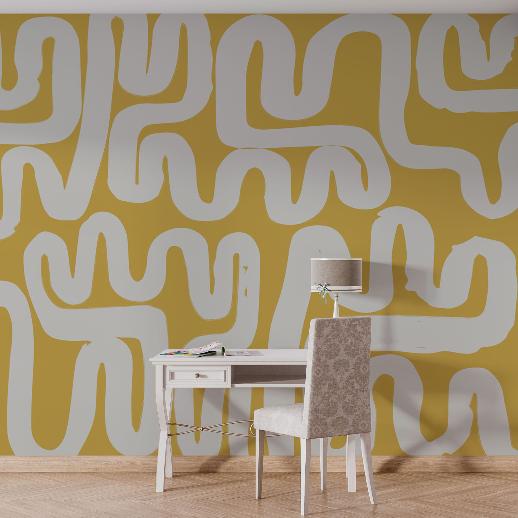 Fleur elke ruimte op met de Fotobehang White and Yellow Maze! Dit speelse ontwerp mengt helder geel met vloeiende witte lijnen, waardoor een gevoel van beweging ontstaat dat aanvoelt als een vrolijk doolhof. Stel je voor dat je een kamer binnenstapt waar het leven een beetje leuker lijkt. Het is perfect voor die gezellige leeshoek, kantoor aan huis of zelfs een levendige woonkamer – want wie wil er nu niet dat gasten het gevoel hebben dat ze door een vrolijke puzzel lopen?