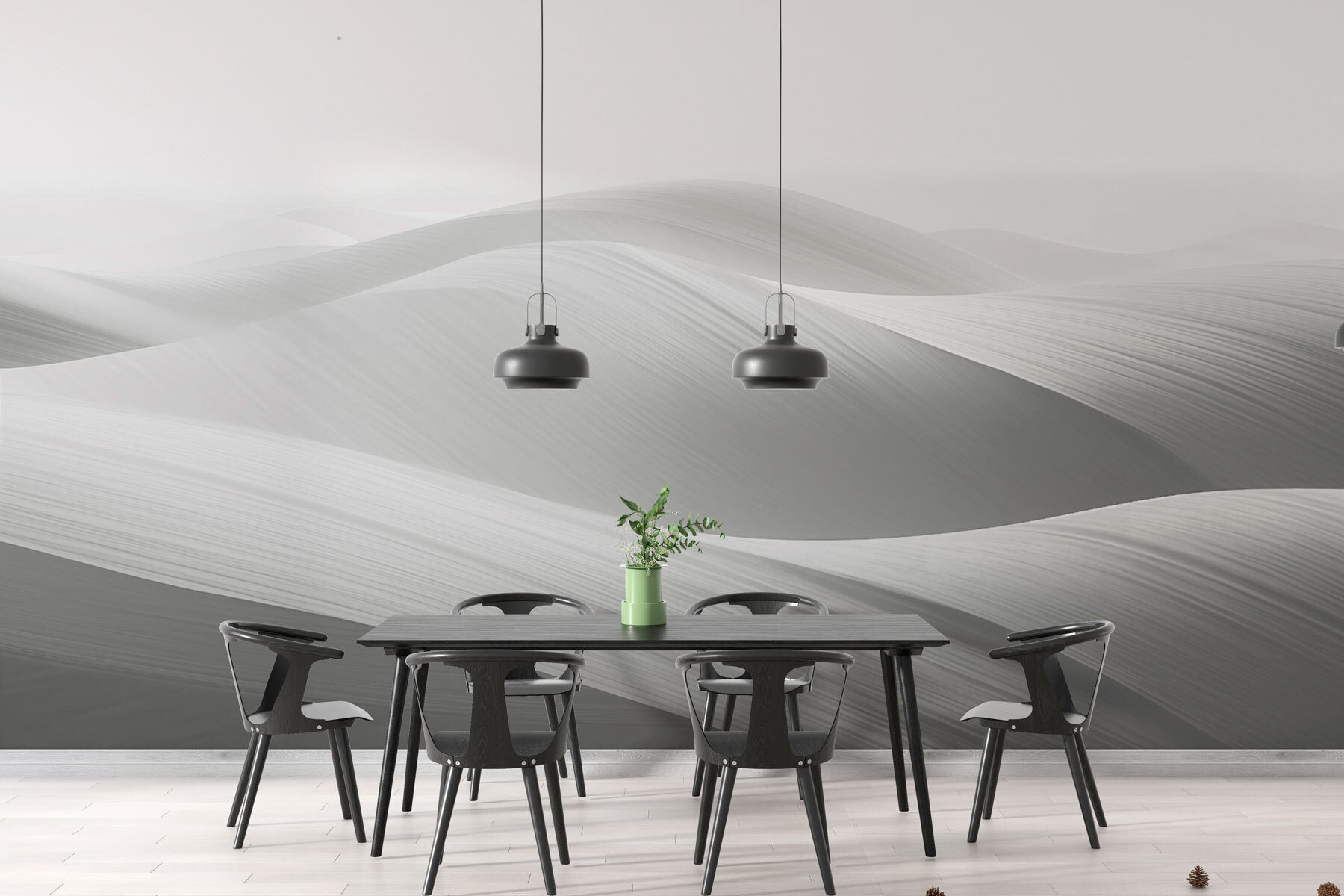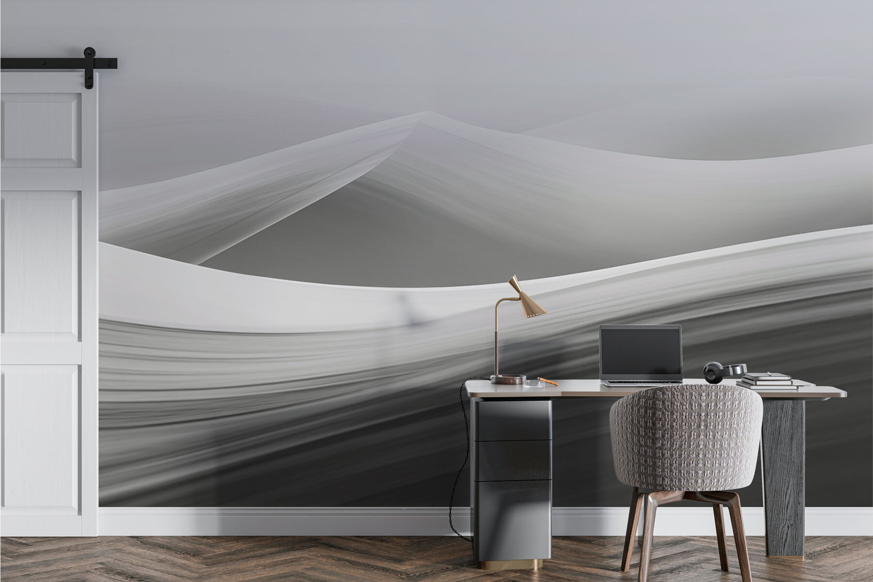 Stel je dit eens voor: een vredige golf van zacht wit en grijs die over je muur rolt en je ruimte moeiteloos verandert in een serene ontsnapping. De muurschildering “White and Grey Landscape” is niet zomaar kunst; het is een ervaring – een zacht gefluister van de schoonheid van de natuur. Perfect voor die dagen waarop je tot rust moet komen en je gedachten moet laten afdwalen. Stel je voor dat je ernaar staart met een kop koffie en de stress weg voelt drijven. Het is alsof je een venster naar rust hebt zonder naar buiten te hoeven gaan – een echte gespreksstarter en toch heerlijk rustgevend. Perfect voor elke kamer die een vleugje zen nodig heeft.