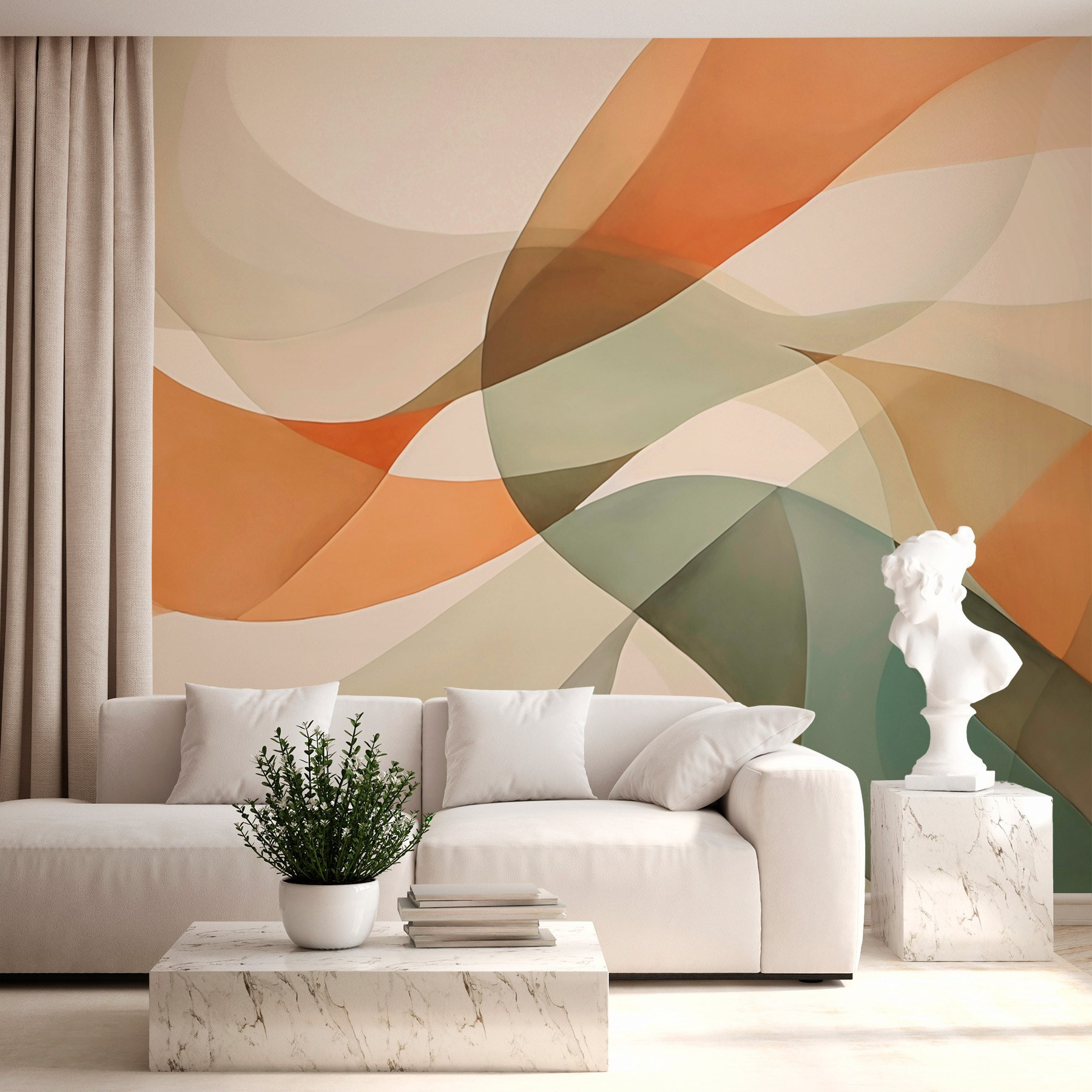 Verander elke kamer in een rustgevend toevluchtsoord met deze muurschildering met vloeiende vormen in aardetinten. Stel je voor dat je een ruimte binnenloopt die je geest kalmeert en uitnodigt tot ontspanning. De zachte wervelingen en zachte tinten werken samen als een warme knuffel op een kille dag – wie wil dat nou niet? Het is alsof de natuur binnenshuis wordt gehaald, perfect om gezellig te zitten met een goed boek of om thee te drinken terwijl je wegdroomt. Of het nu voor de woonkamer of een rustige slaapkamer is, deze muurschildering geeft elk moment een speciaal gevoel. Hij is fris, uitnodigend en een beetje kunstzinnig, waardoor elke muur tot leven komt!