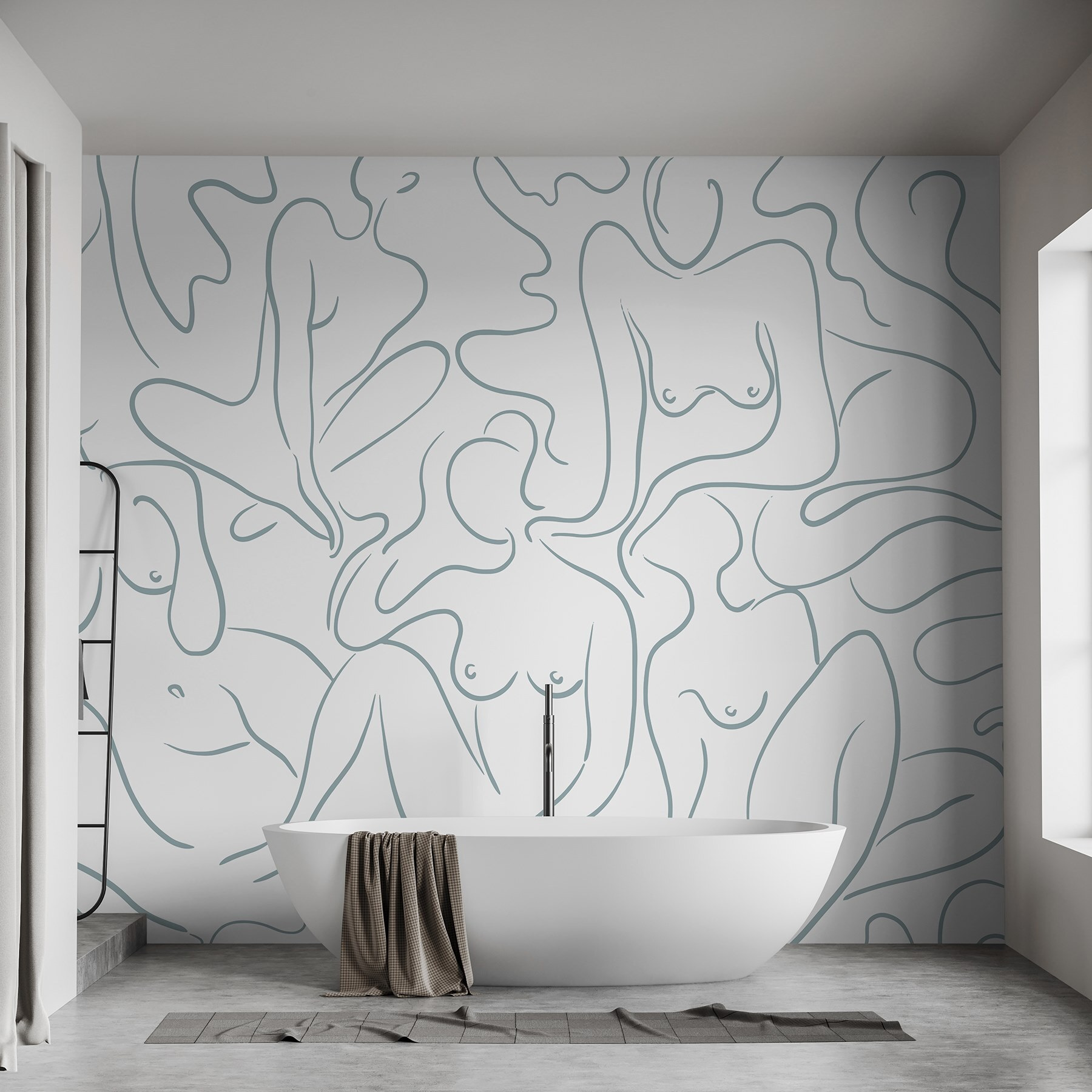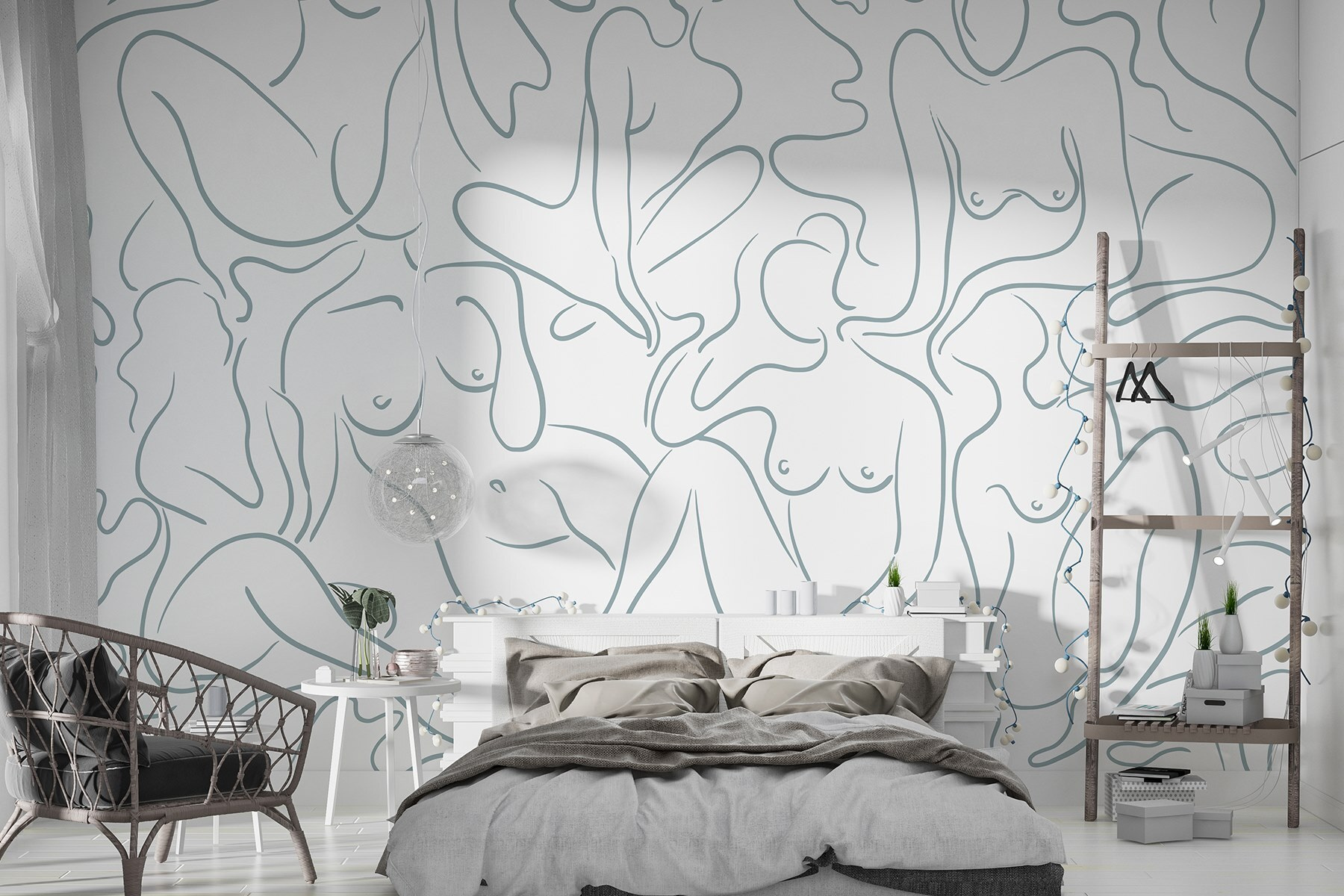 Transformeer je ruimte met deze prachtige muurschildering met contouren van vrouwenlichamen die over de muur lijken te dansen. De vloeiende lijnen creëren een gevoel van beweging en nodigen uit tot gedachten aan gratie en schoonheid. Het is alsof je een galerie in je woonkamer hebt! Stel je gezellige avonden voor, nippend aan je favoriete drankje, terwijl deze muurschildering een gesprek op gang brengt en bewondering opwekt. Vrienden zullen vragen waar het vandaan komt en jij zult glimlachen alsof je een verborgen juweeltje hebt ontdekt. Perfect voor elke kamer die hunkert naar een unieke sfeer, het voegt diepte toe zonder te overweldigen. Geef die muren een nieuw verhaal!