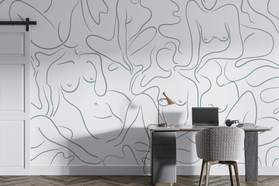 Transformeer je ruimte met deze prachtige muurschildering met contouren van vrouwenlichamen die over de muur lijken te dansen. De vloeiende lijnen creëren een gevoel van beweging en nodigen uit tot gedachten aan gratie en schoonheid. Het is alsof je een galerie in je woonkamer hebt! Stel je gezellige avonden voor, nippend aan je favoriete drankje, terwijl deze muurschildering een gesprek op gang brengt en bewondering opwekt. Vrienden zullen vragen waar het vandaan komt en jij zult glimlachen alsof je een verborgen juweeltje hebt ontdekt. Perfect voor elke kamer die hunkert naar een unieke sfeer, het voegt diepte toe zonder te overweldigen. Geef die muren een nieuw verhaal!