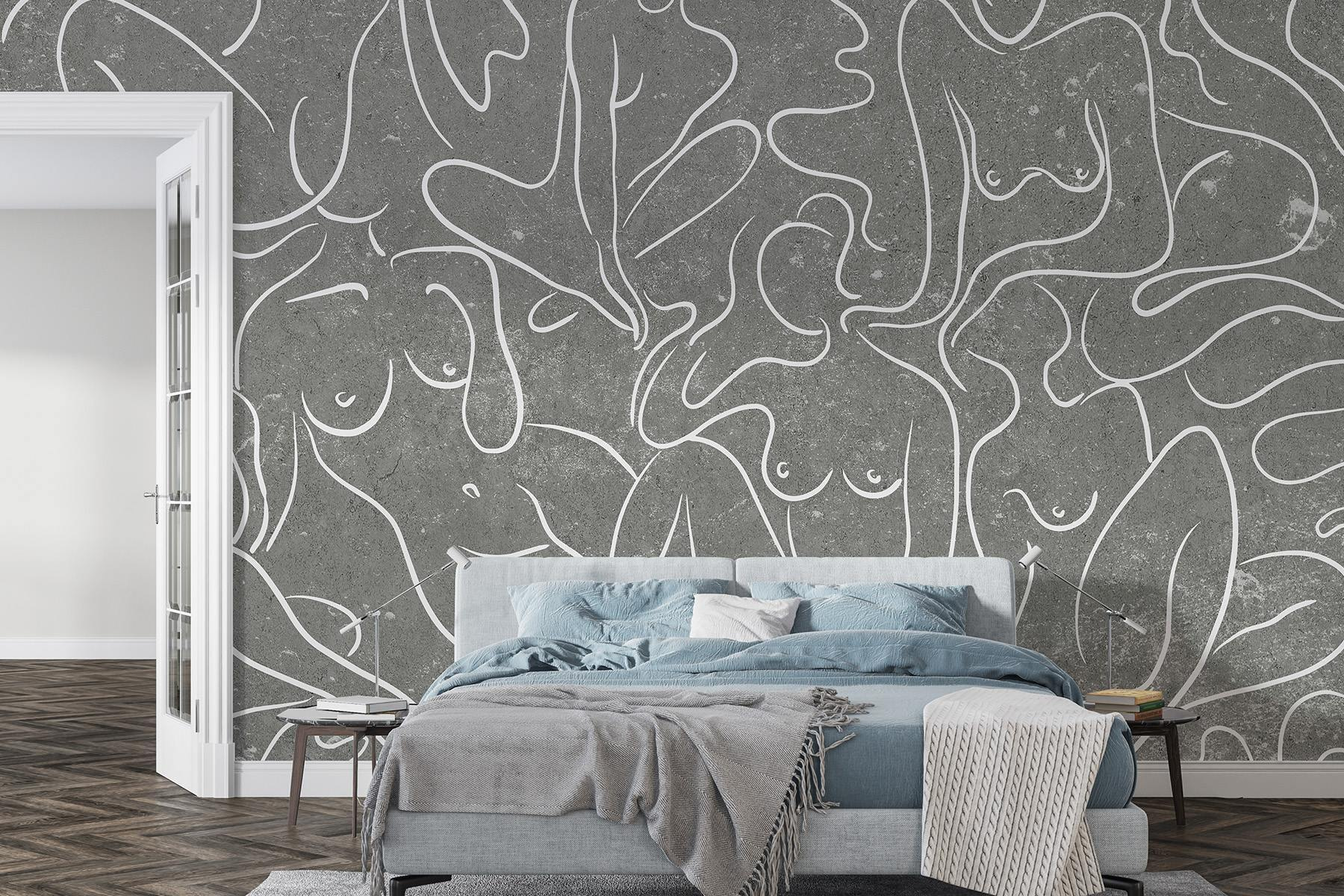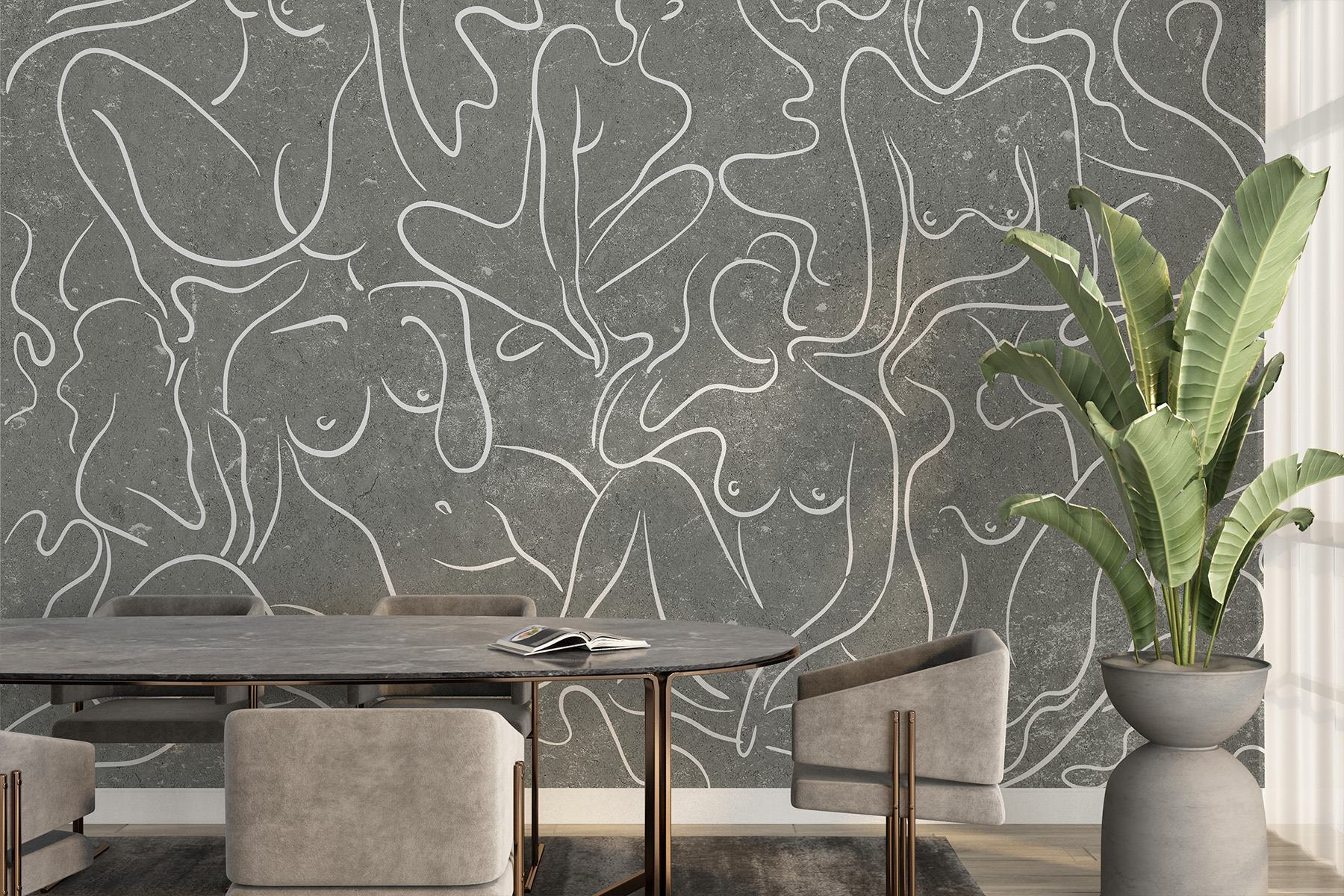 Transformeer je ruimte met deze boeiende muurschildering met een speelse dans van vrouwenlichaamstekeningen. Met zijn vloeiende lijnen tegen een gedempte achtergrond voegt dit stuk een zacht vleugje elegantie toe dat creativiteit fluistert. Stel je voor dat je een kamer binnenkomt en meteen een golf van inspiratie over je heen voelt komen – een warme omhelzing van kunst die een gesprek op gang brengt. Vrienden zullen de eigenzinnige maar toch geraffineerde uitstraling bewonderen, waardoor het perfect is voor woonkamers of gezellige hoekjes. Het is alsof je een galerie in huis hebt. Deze muurschildering nodigt je uit om schoonheid in eenvoud te waarderen, elke blik onthult iets nieuws. Een echte blikvanger!