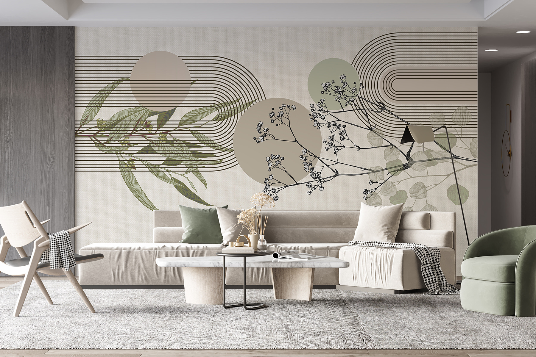 Stel je voor: je nipt van je ochtendkoffie en deze aardetinten omhullen je met een warme knuffel. Of je nu een natuurliefhebber, een designliefhebber of iemand die gewoon een coole achtergrond voor je videogesprekken wil, deze muurschildering is er voor jou. De abstracte accenten en botanische elementen maken het meer dan alleen een muurbedekking – het is kunst die je dagelijkse leven opvrolijkt! Dus waarom laat je je muren niet het woord doen?