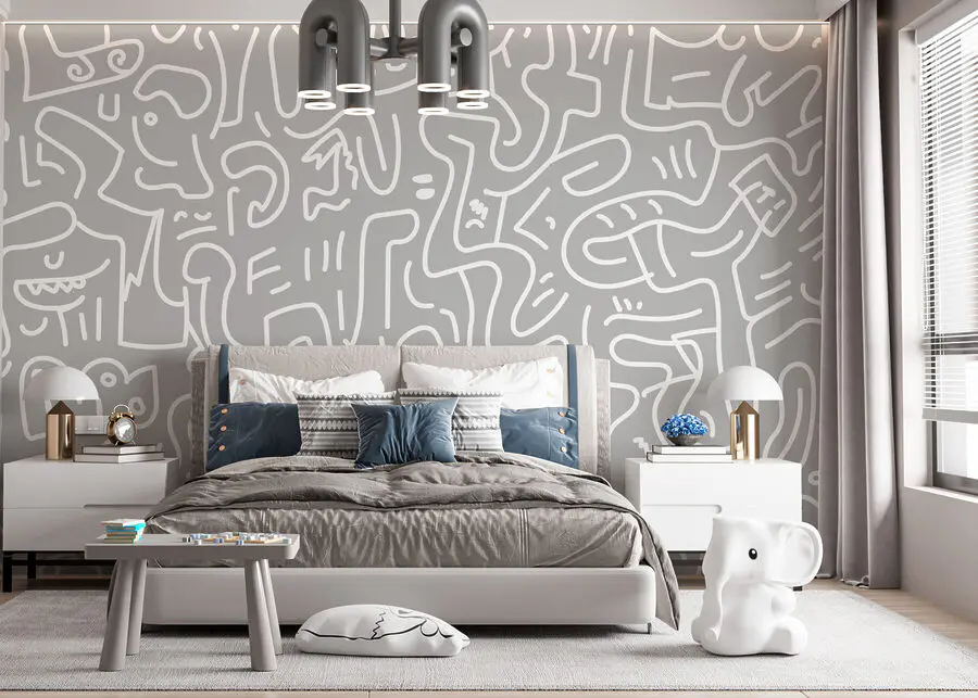 Stel je voor dat je je kamer binnenloopt en begroet wordt door de speelse wervelingen van deze grijs-witte muurschildering. Het is alsof moderne kunst heeft besloten een feestje te bouwen op je muur, en iedereen is uitgenodigd. Perfect voor wie houdt van een mix van stijl en eigenzinnigheid, voegt dit stuk een vleugje designerflair toe zonder zichzelf al te serieus te nemen. Het is een decor voor je creatieve gedachten of de ideale conversatiestarter. Het geeft je het gevoel dat je kamer je een zachte, stijlvolle knuffel geeft telkens als je binnenkomt. Waarom genoegen nemen met gewoon als je dit kunt hebben?