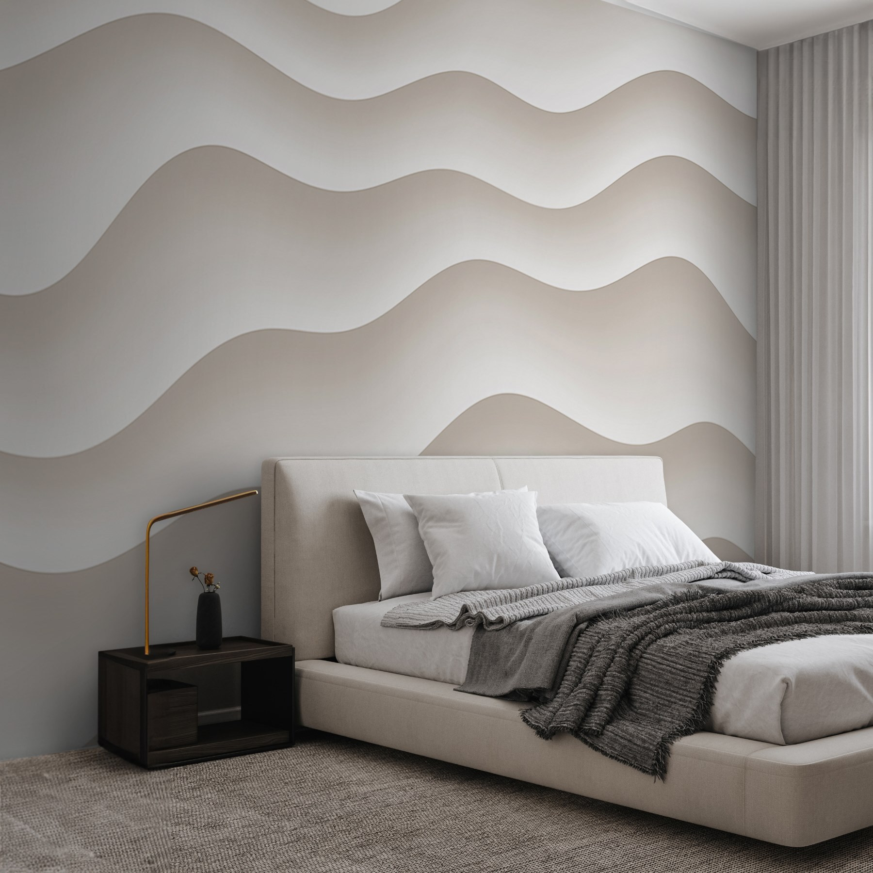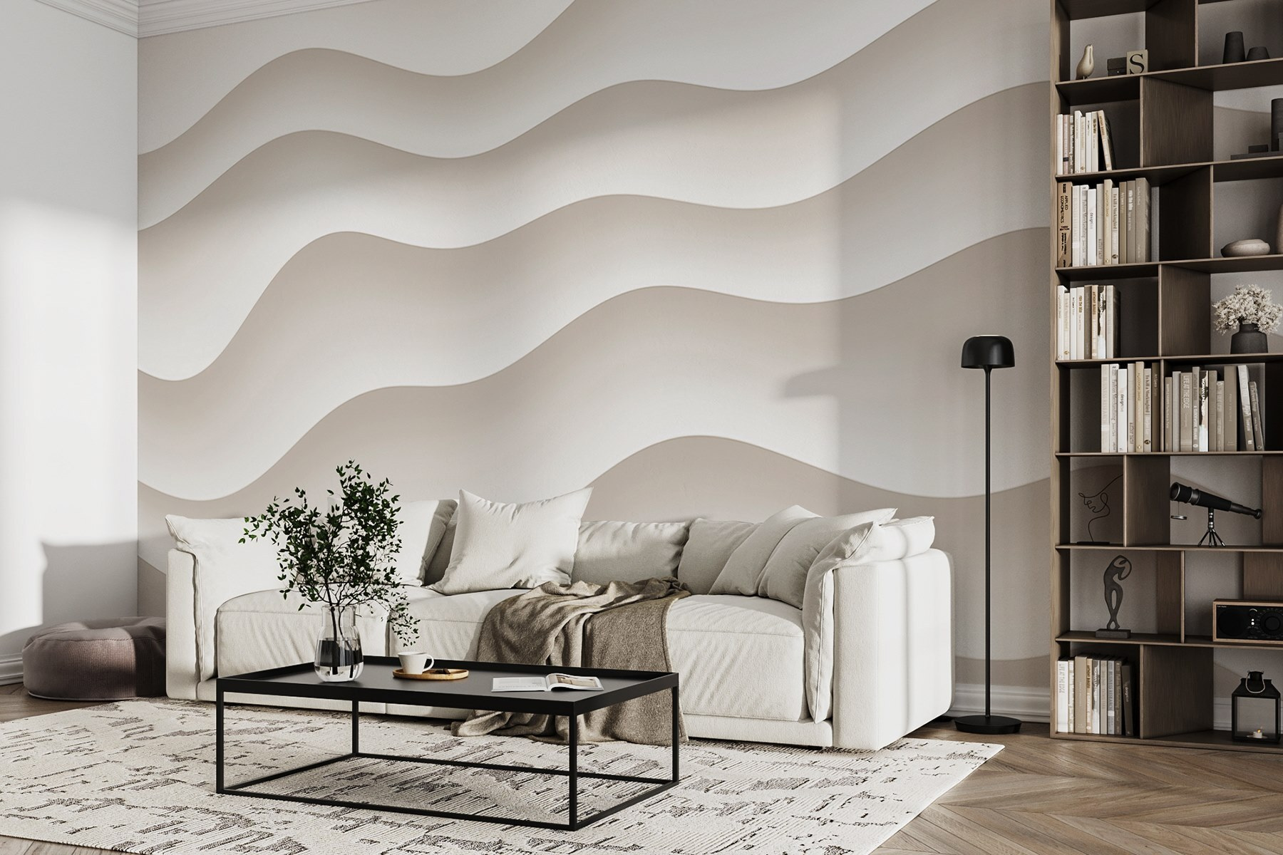 Transformeer je ruimte met deze prachtige muurschildering met zacht witte en grijze golvende lijnen. Het is alsof je een zacht briesje omarmt zonder je huis te verlaten. Stel je voor dat je aan je koffie nipt of lekker wegkruipt met een boek terwijl de rustgevende golven over je muren dansen en kalmte in je leven uitnodigen. Perfect voor die lege woonkamer of slaperige slaapkamer, het voegt een vleugje kunst toe zonder overweldigend aan te voelen. Of je nu een minimalist bent of van een beetje stijl houdt, deze muurschildering past precies in je interieur. Het is een stijlvolle achtergrond die zeker een gesprek op gang zal brengen – wacht maar tot vrienden hem zien!